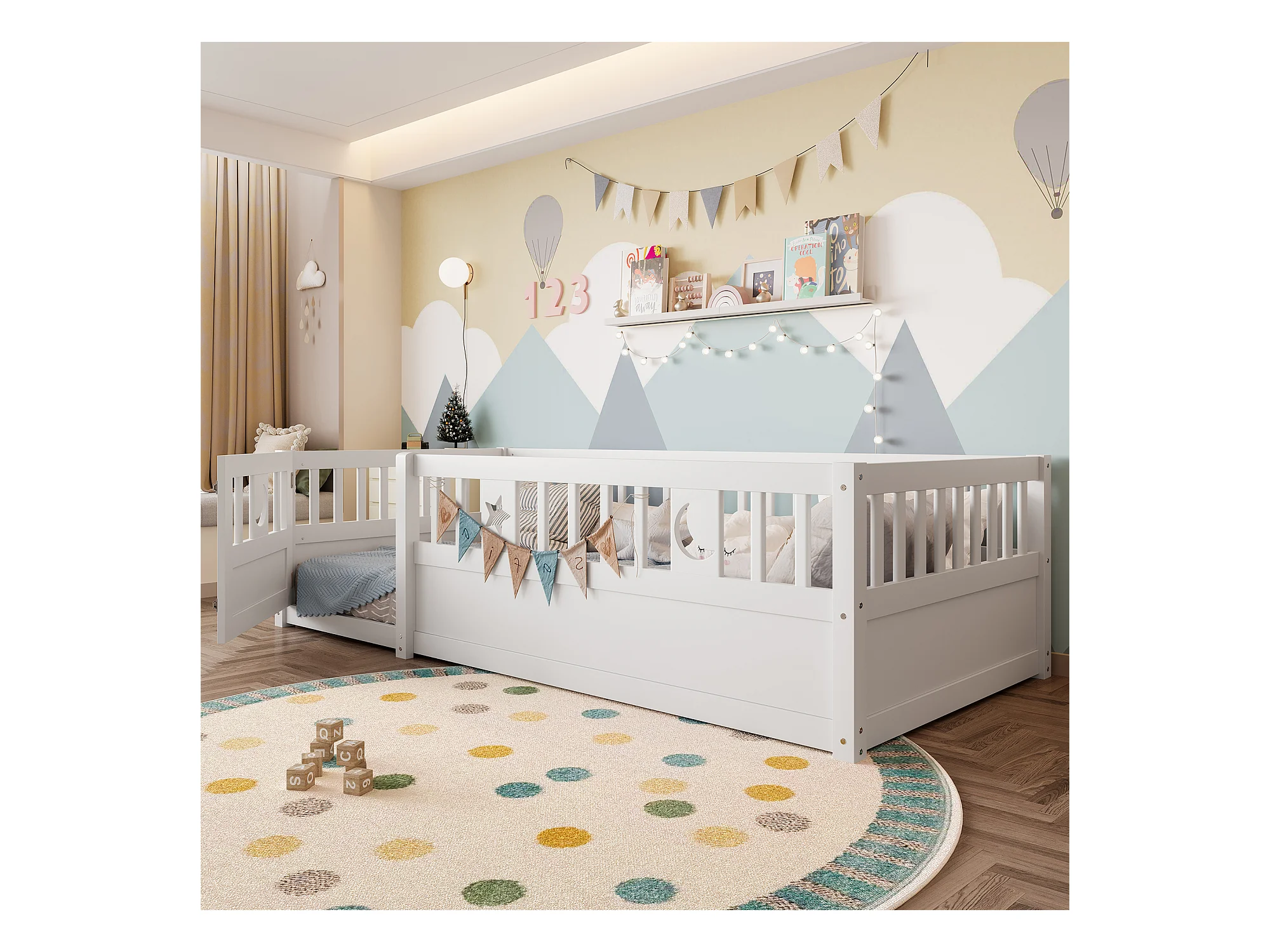 Lit enfant 90x190 cm avec barreaux, décor étoile et lune, sans matelas, style minimaliste, Blanc