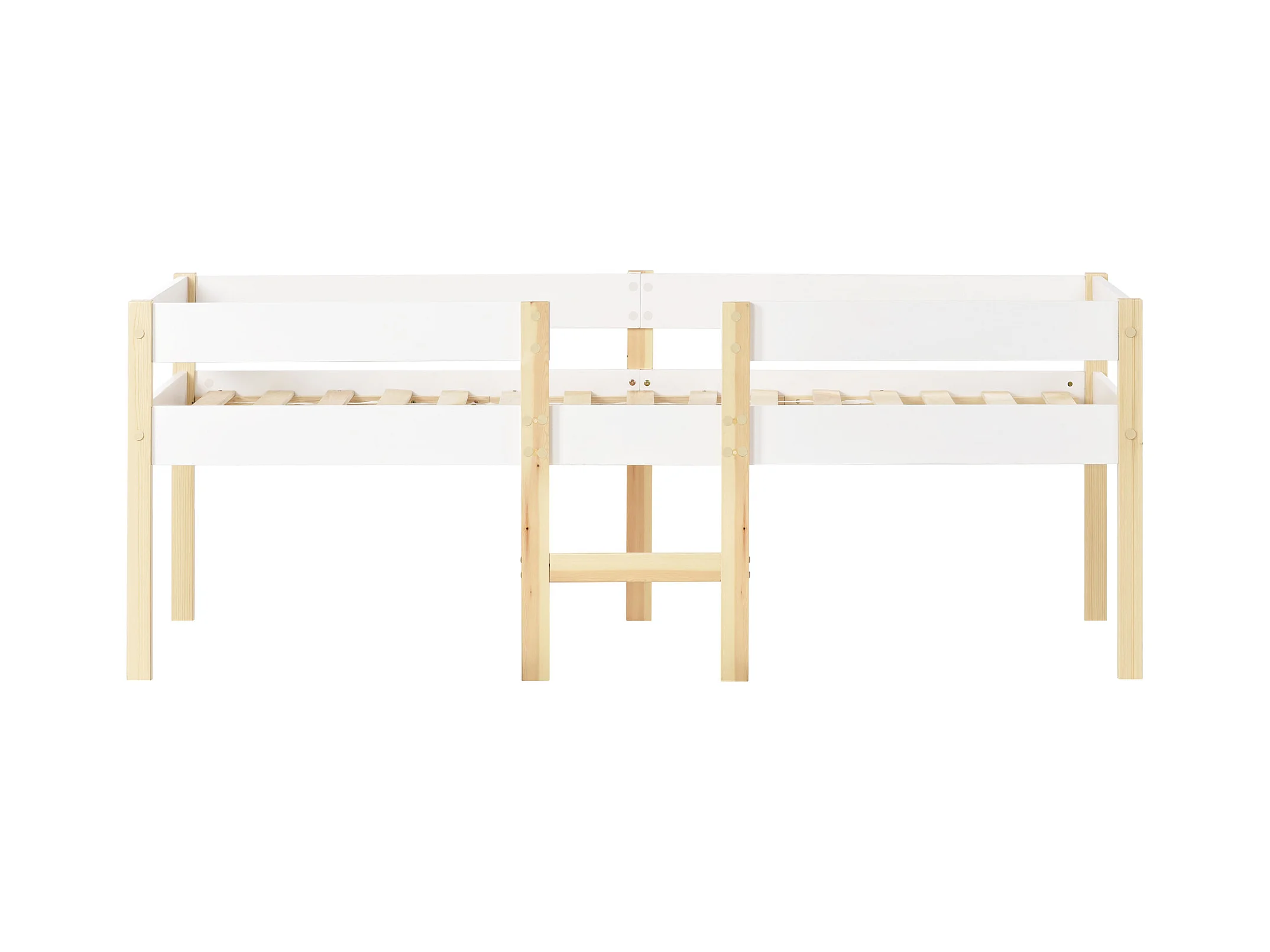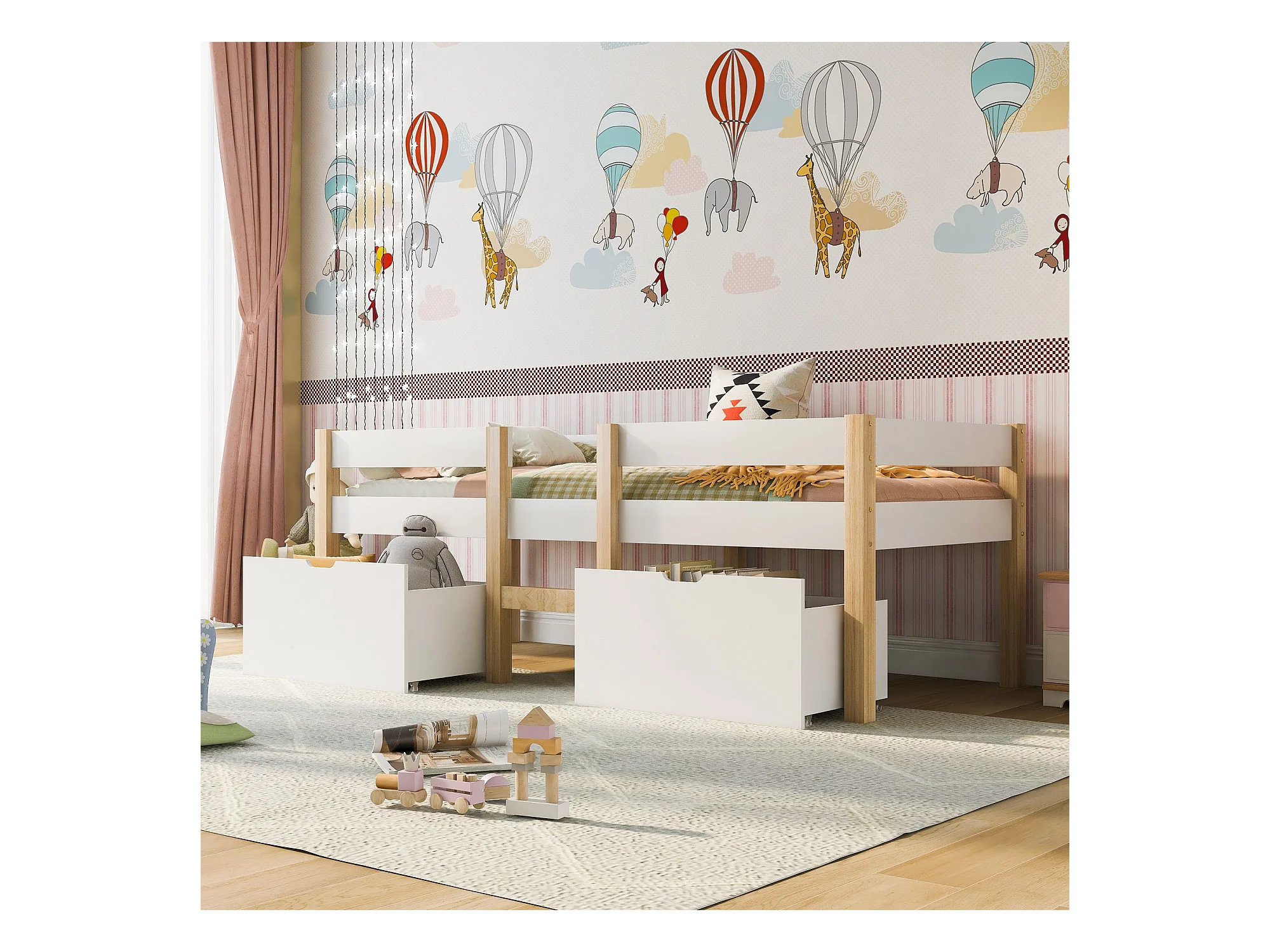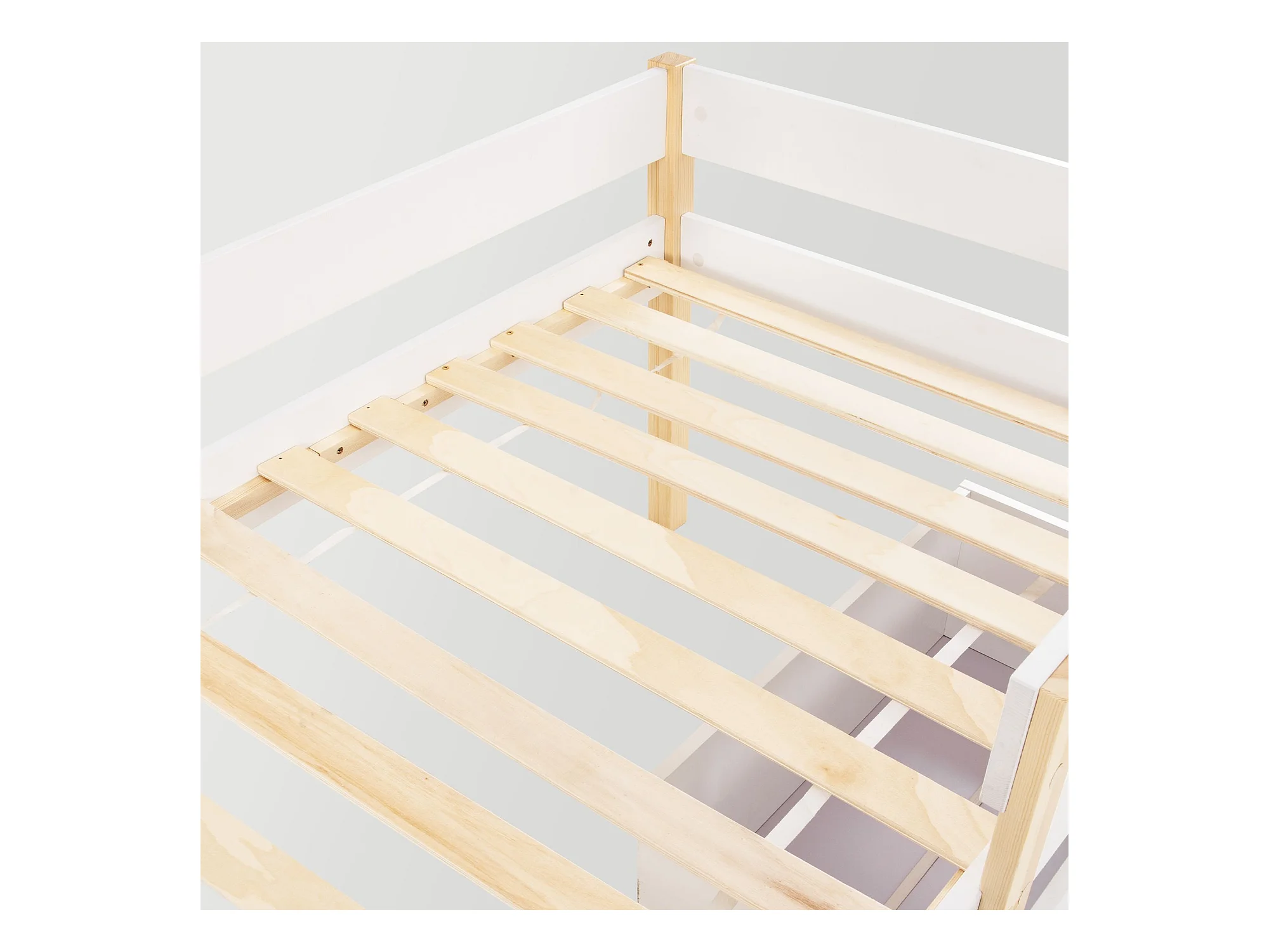 Lit enfant 90x190 cm - Lit simple avec 2 tiroirs et échelle - bois blanc - sans matelas
