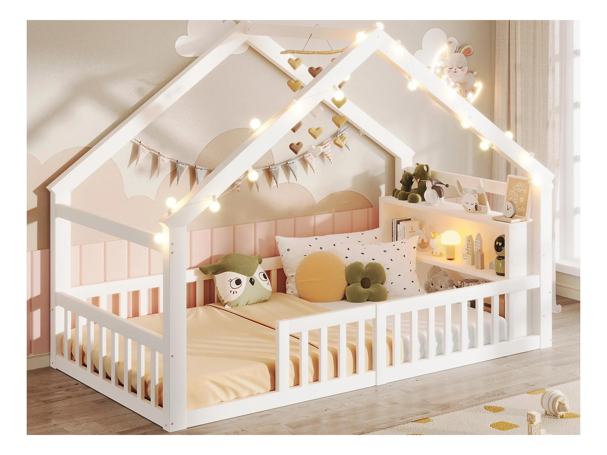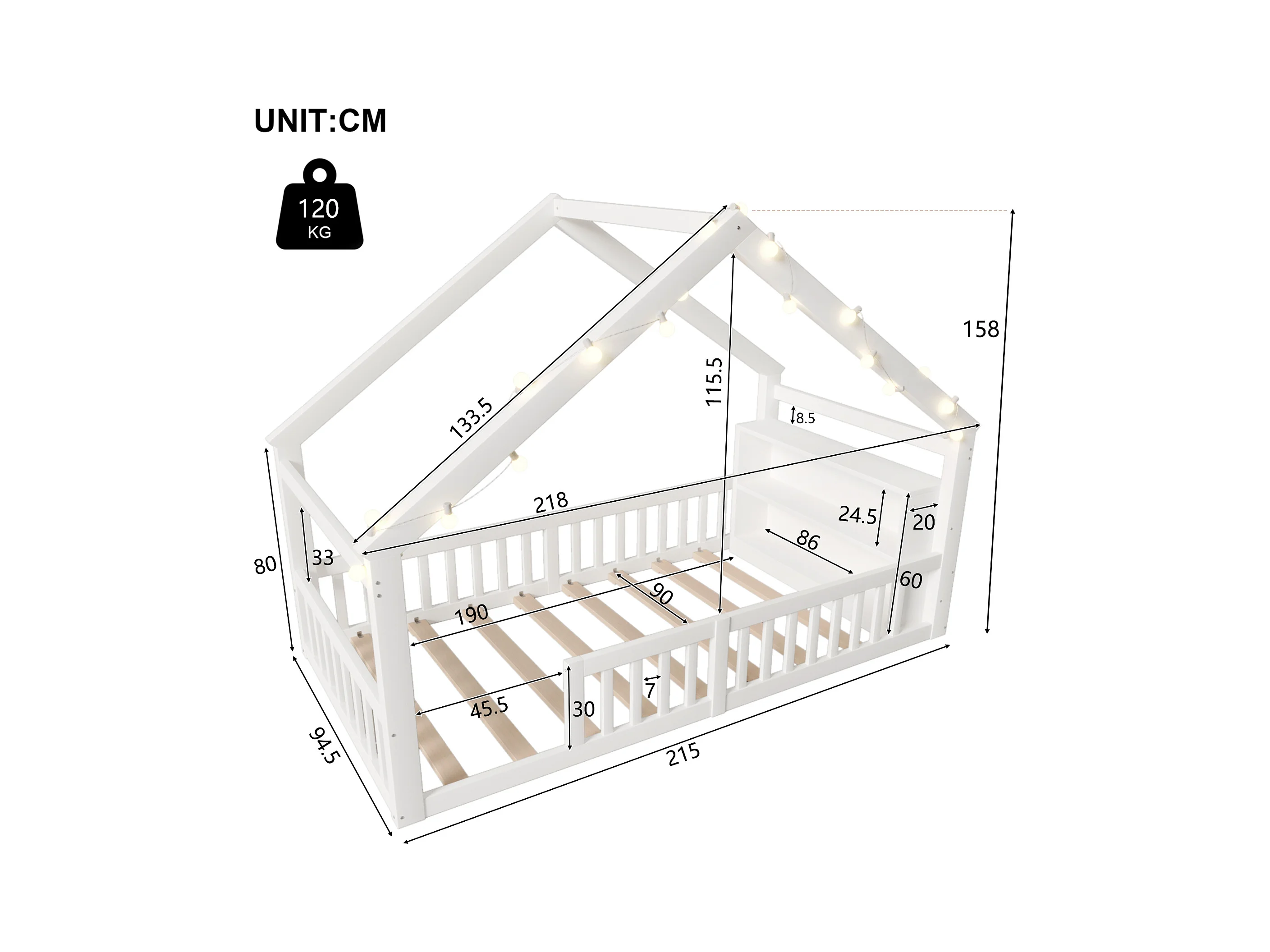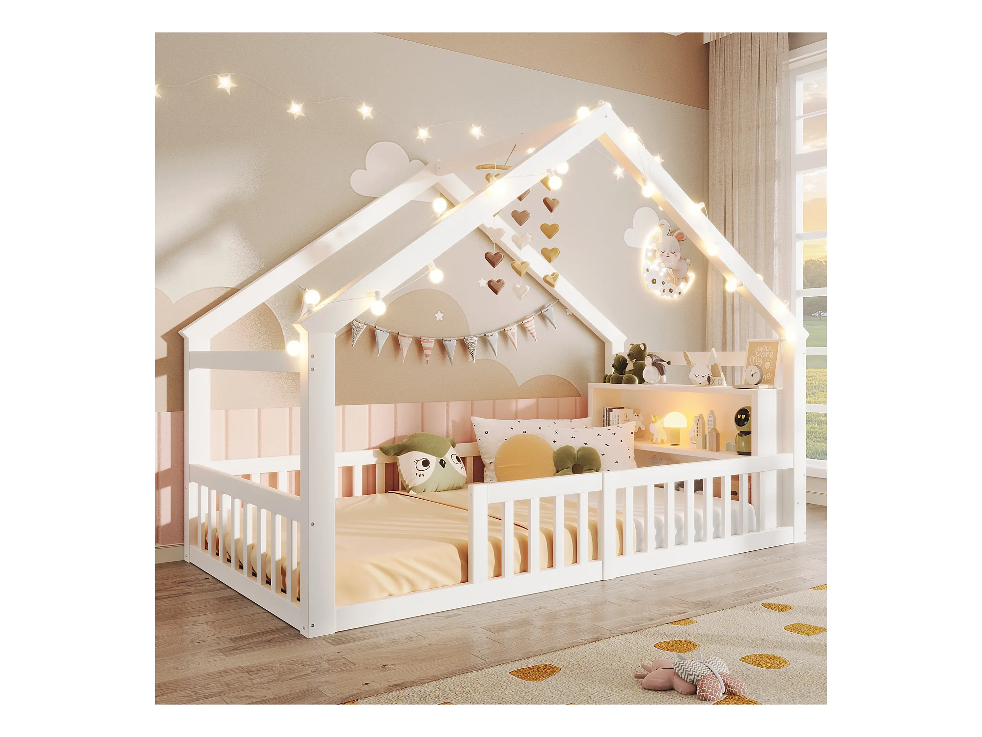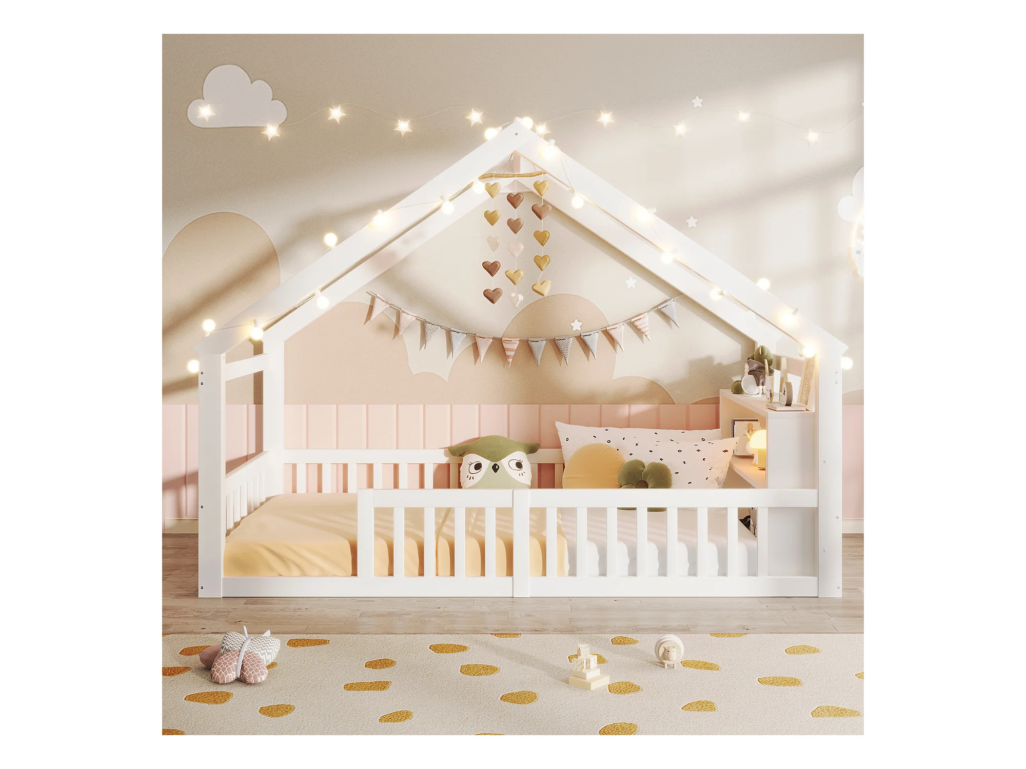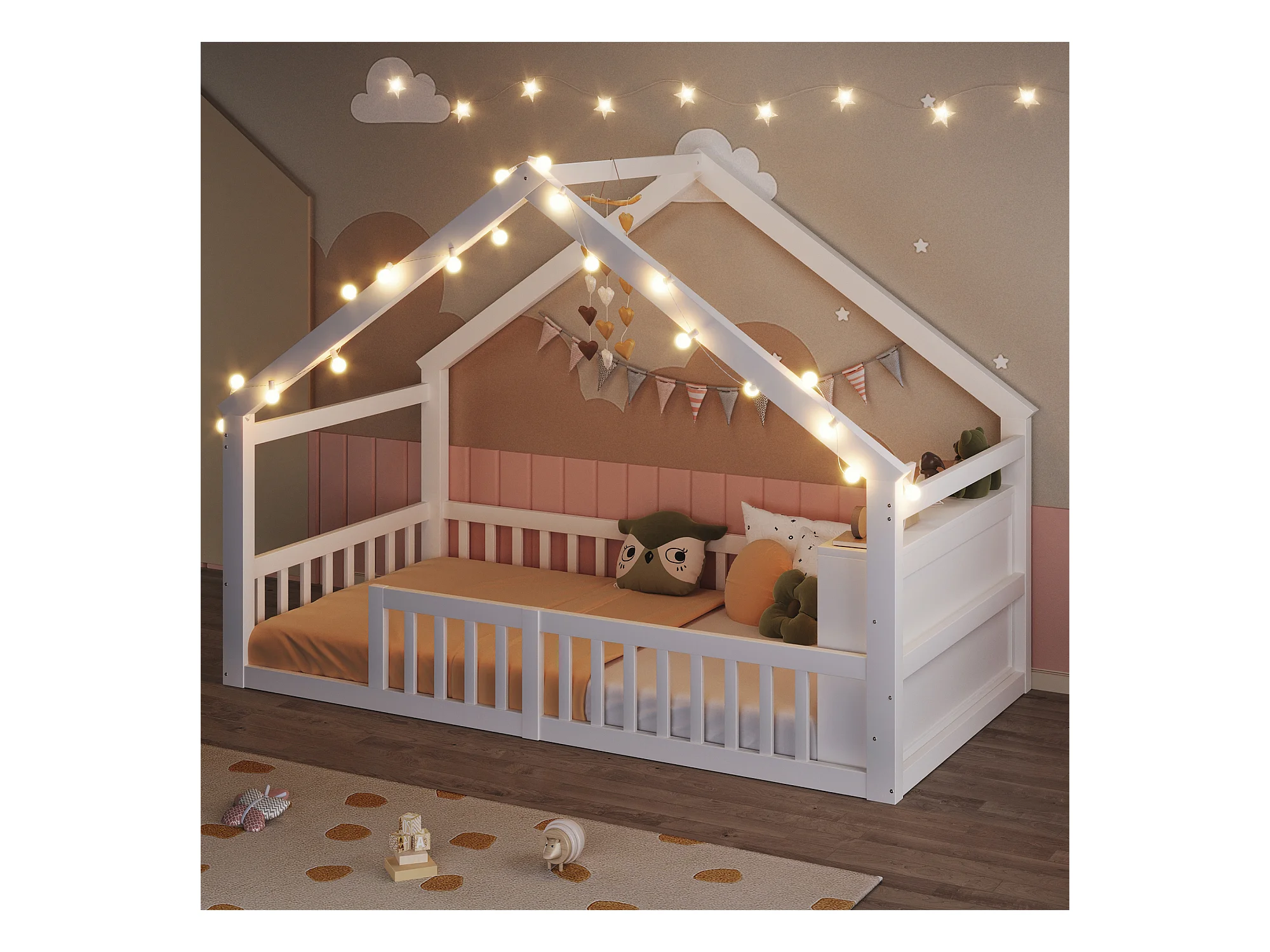 Lit enfant 90x190 cm - avec barrières de sécurité - pin - blanc (matelas non inclus)