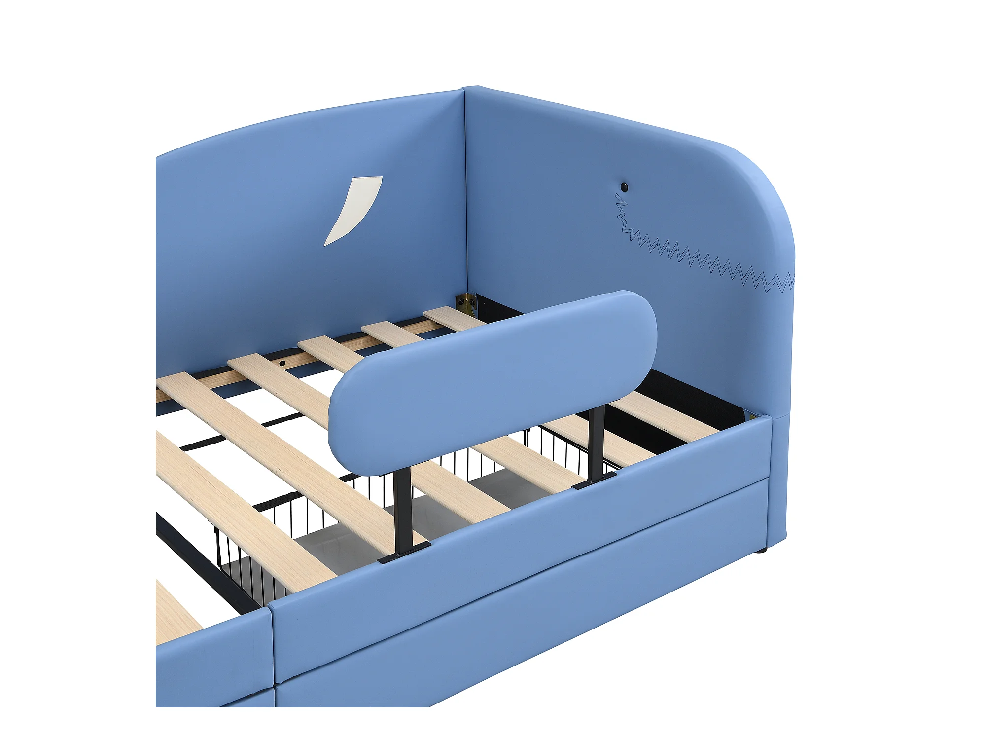 Lit enfant 90x200 cm - Cadre de lit en métal avec 2 tiroirs - design baleine - bleu