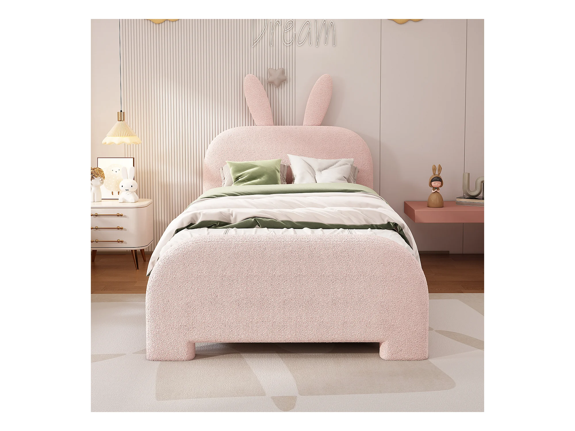 Lit enfant 90x200 cm en Forme lapin avec 2 tiroirs - Rose (sans matelas)