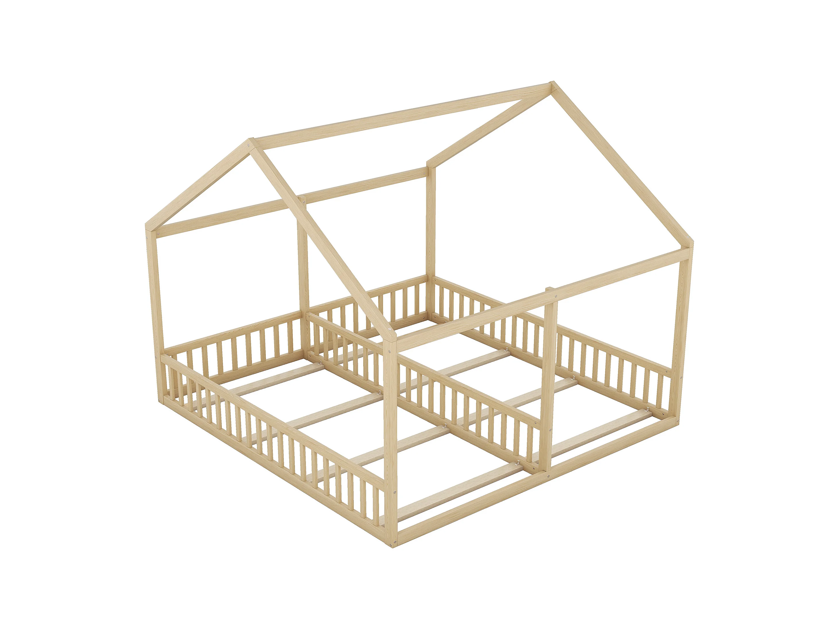 Lit enfant 90x200 cm, Lit maison 2-en-1, Pin, Gris (204x187x168 cm)