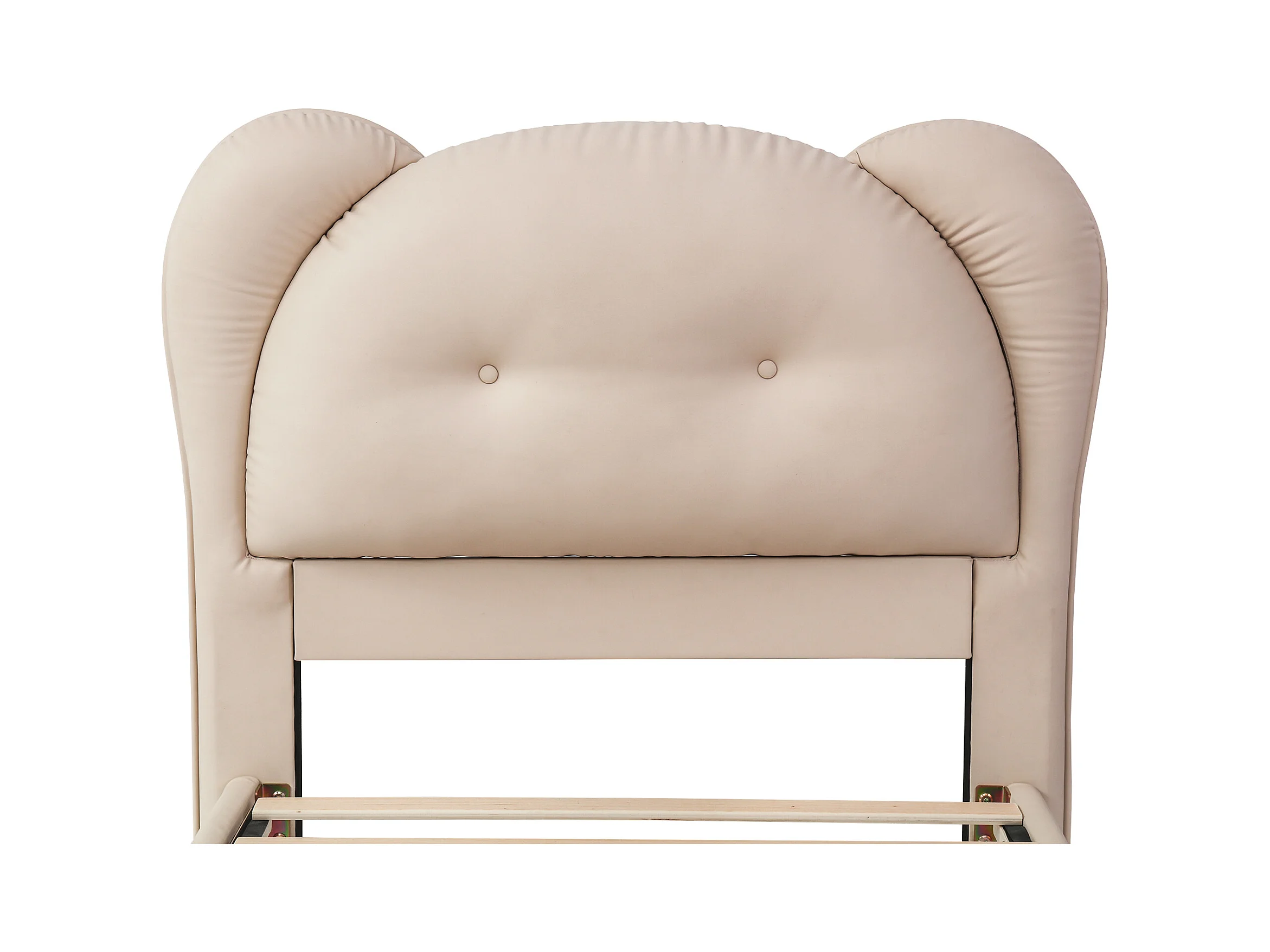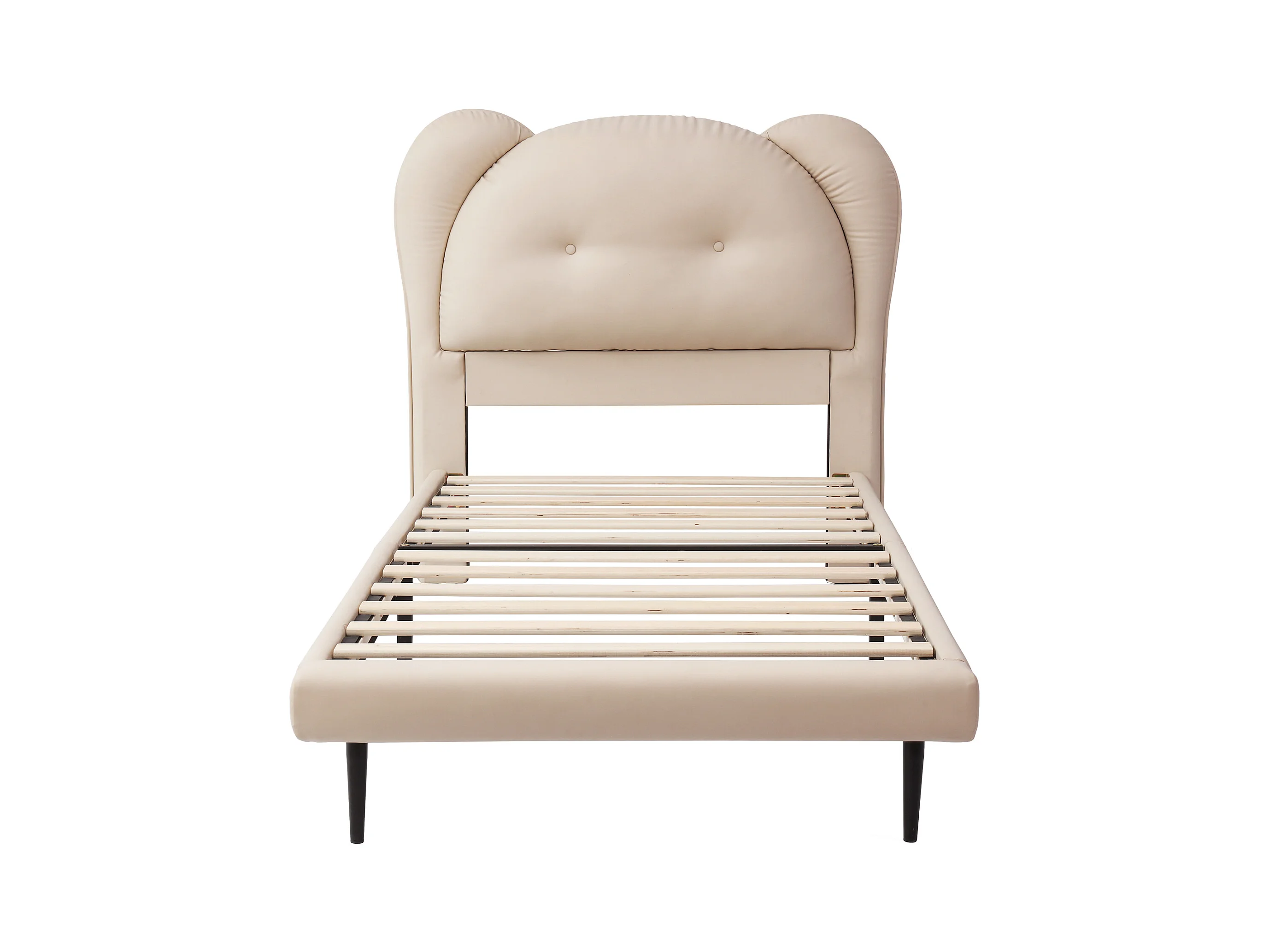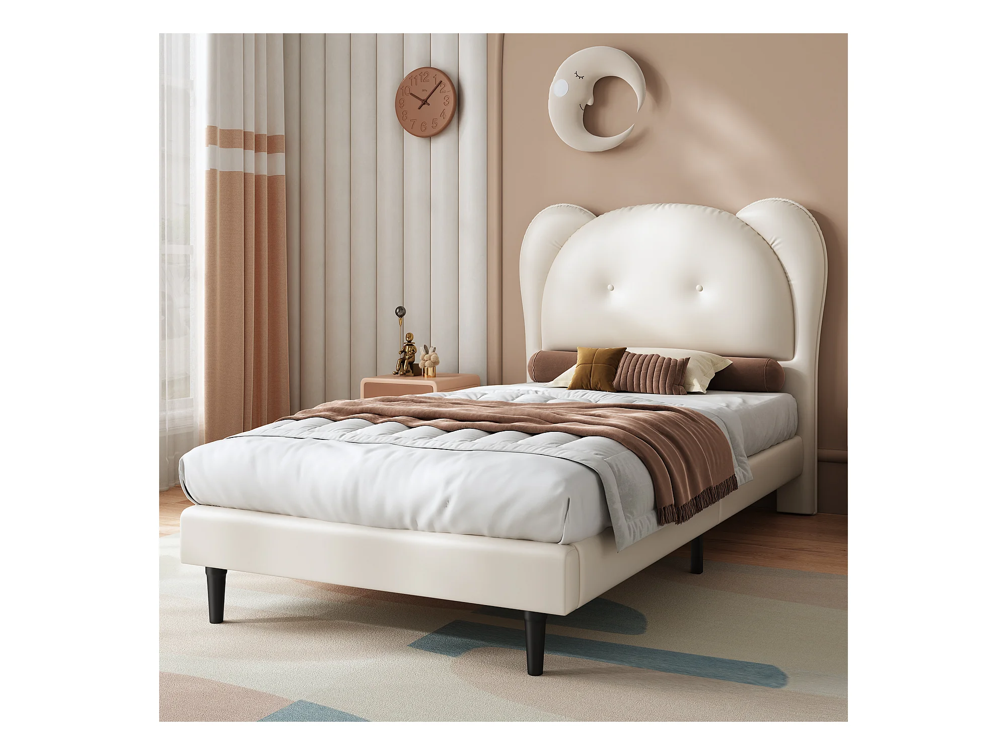 Lit enfant 90x200 cm, PU beige, lit simple avec tête de lit rembourrée et sommier à lattes - sans matelas