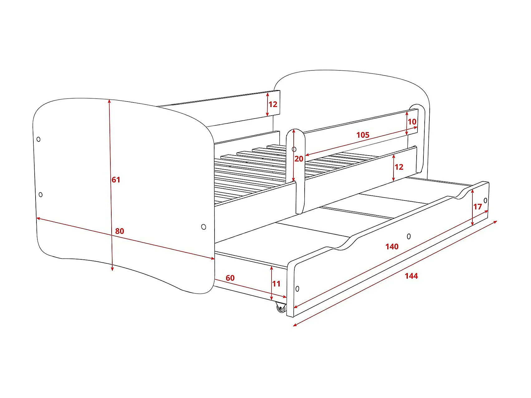 Lit enfant automobile avec sommiers et barrière de sécurité amovible Drimy-Matelas mousse-80x180-Tiroirs Avec tiroir
