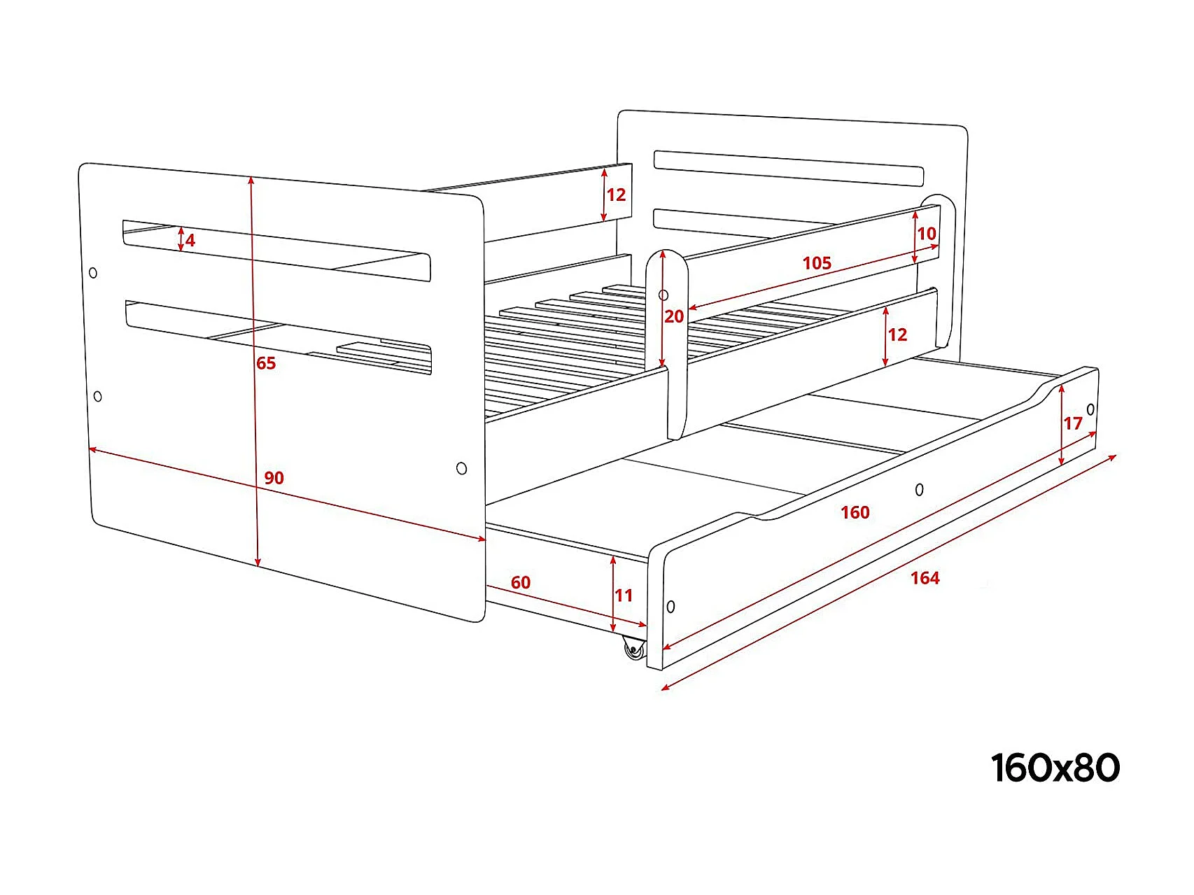 Lit enfant avec barrière de sécurité amovible blanc et rose Moly-80x180-Tiroirs Avec tiroir