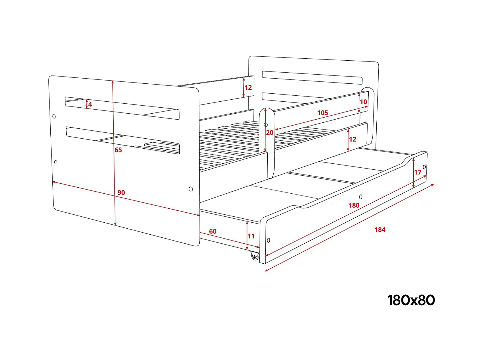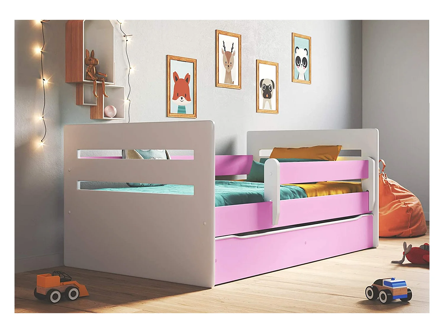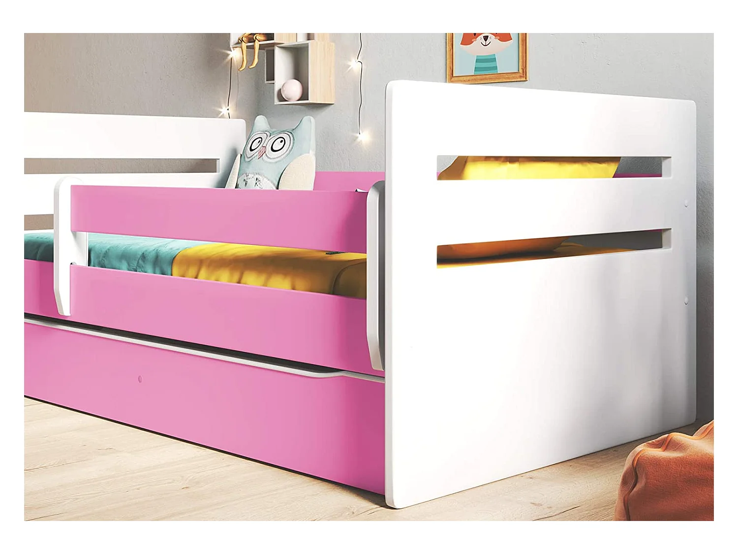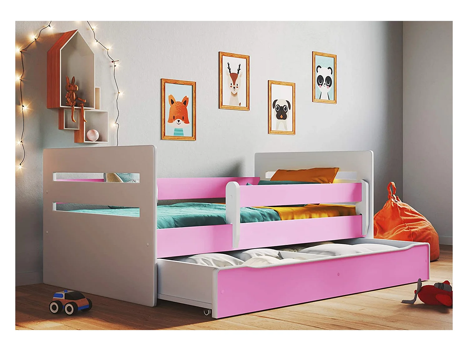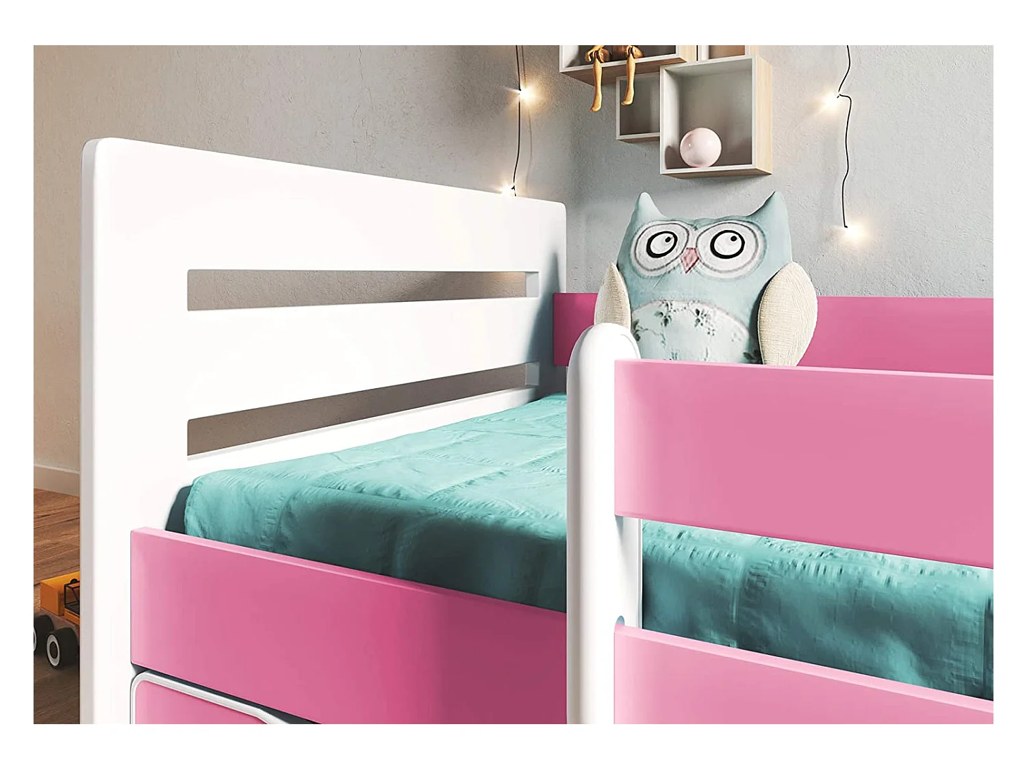 Lit enfant avec barrière de sécurité amovible blanc et rose Moly-Matelas mousse-80x180