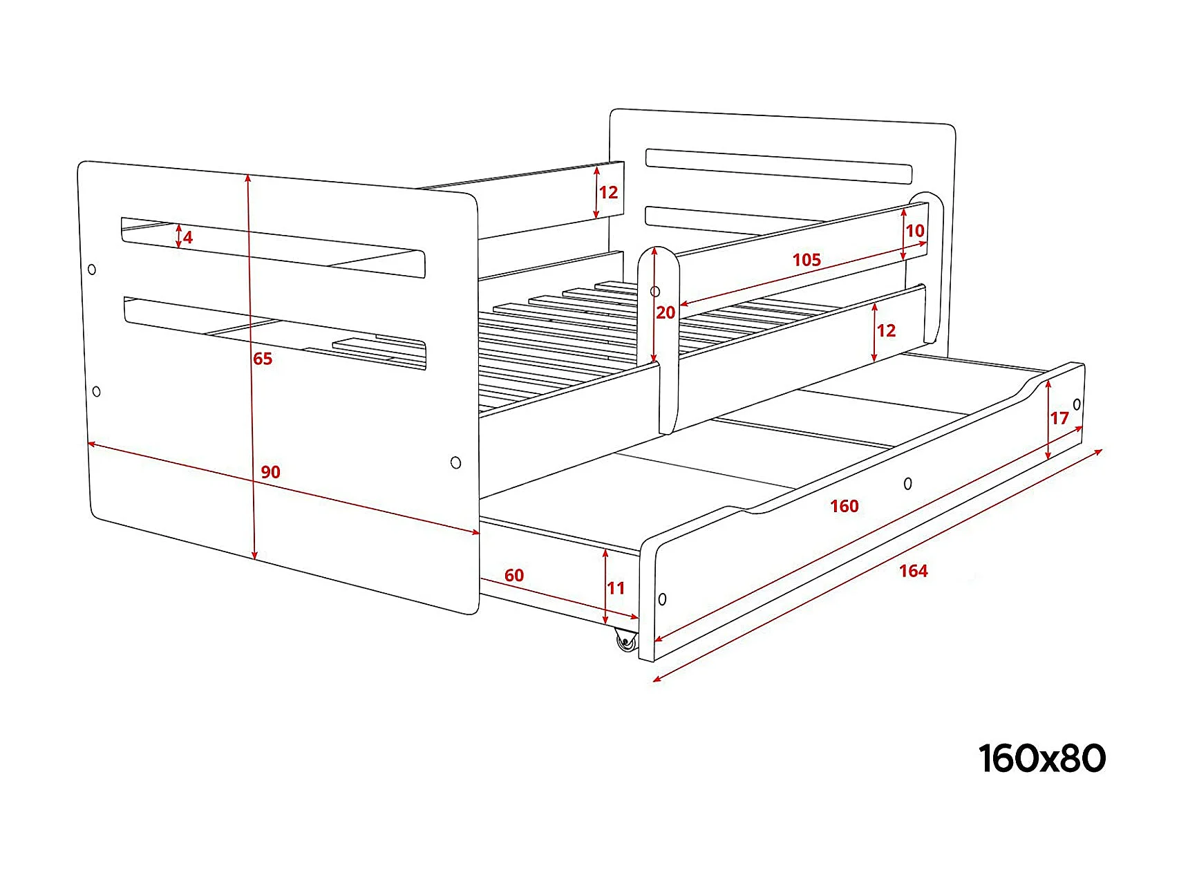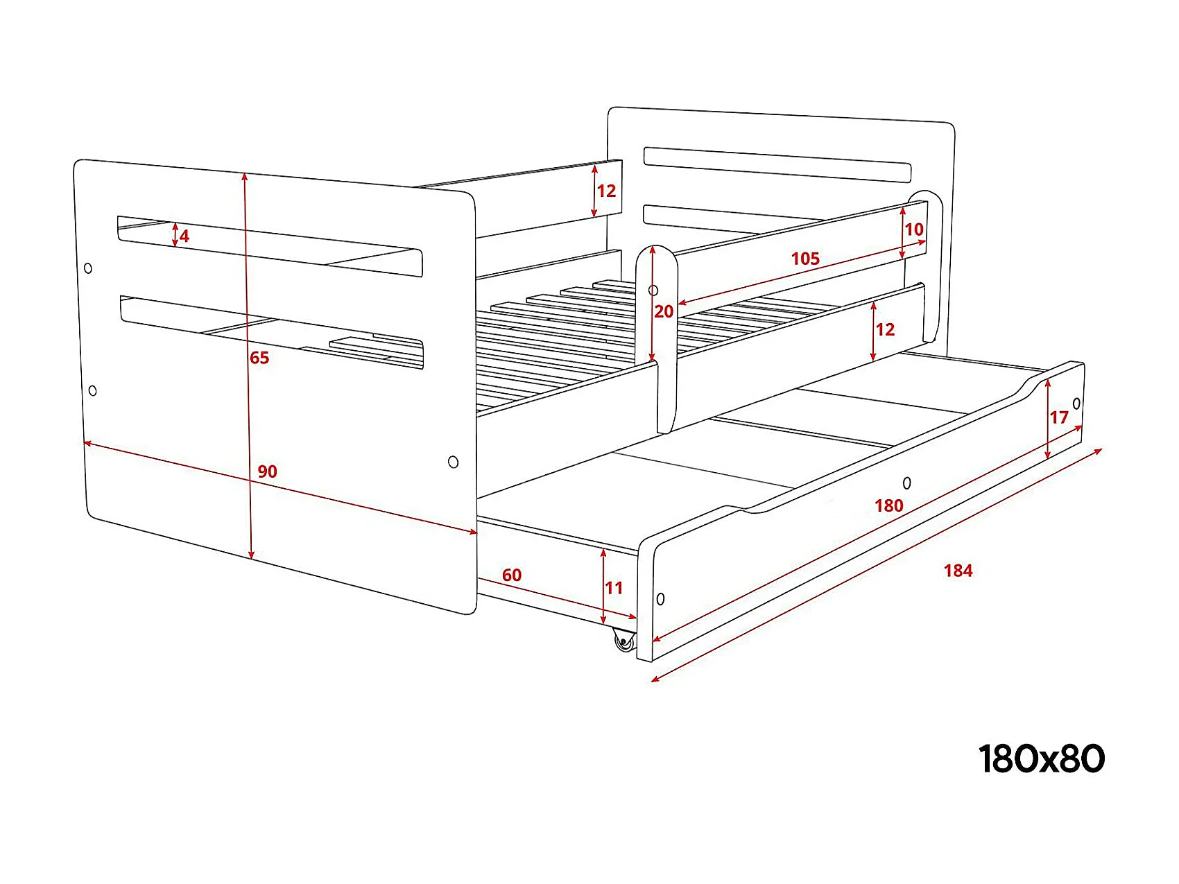 Lit enfant avec barrière de sécurité amovible blanc et rose Moly-Matelas mousse-80x180-Tiroirs Avec tiroir