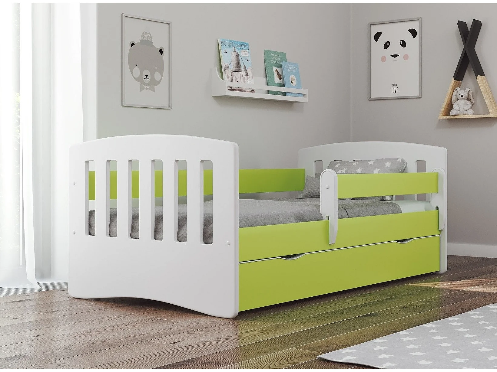 Lit enfant avec barrière de sécurité amovible vert Klaky-Matelas mousse-80x180-Tiroirs Avec tiroir