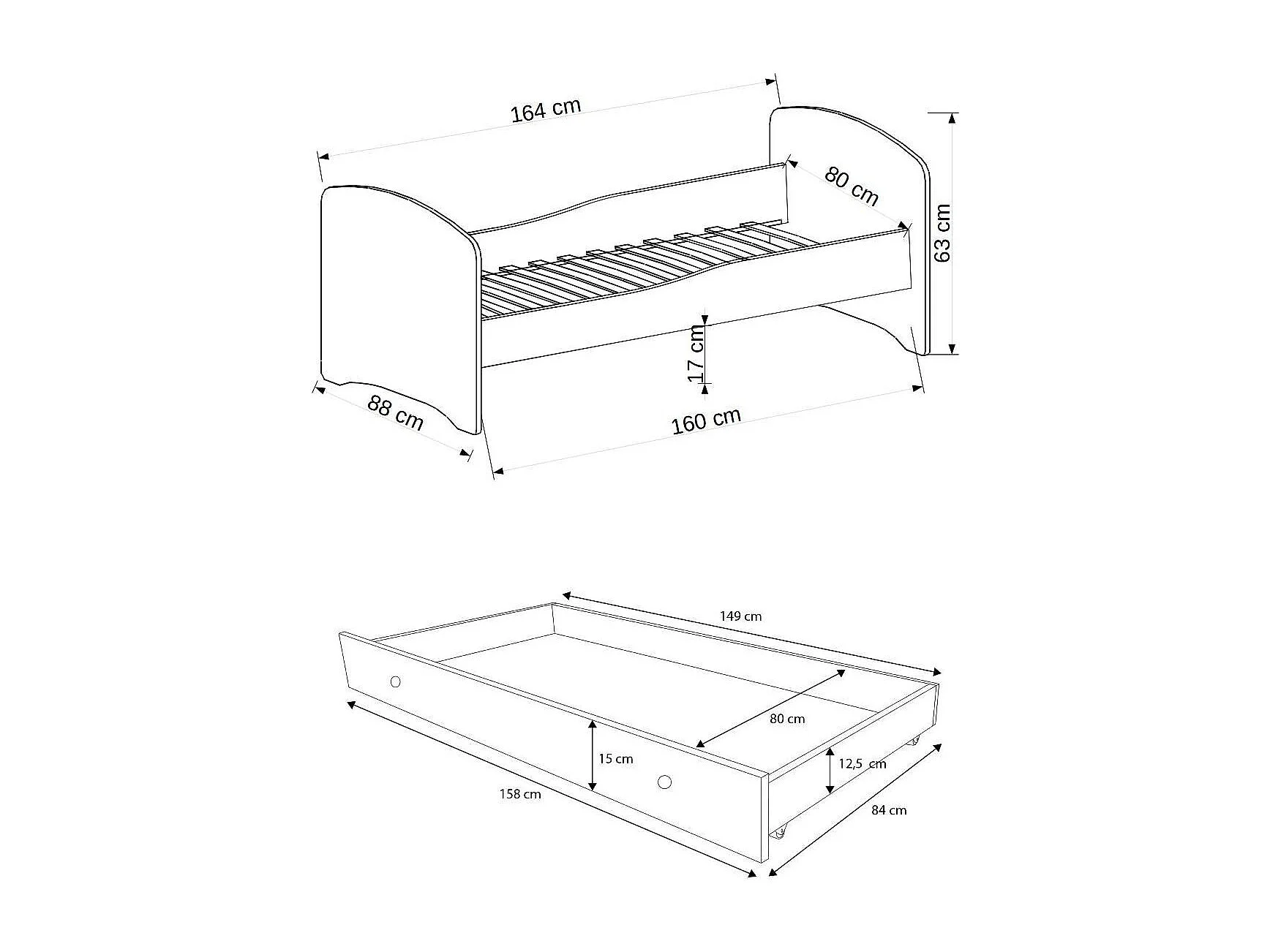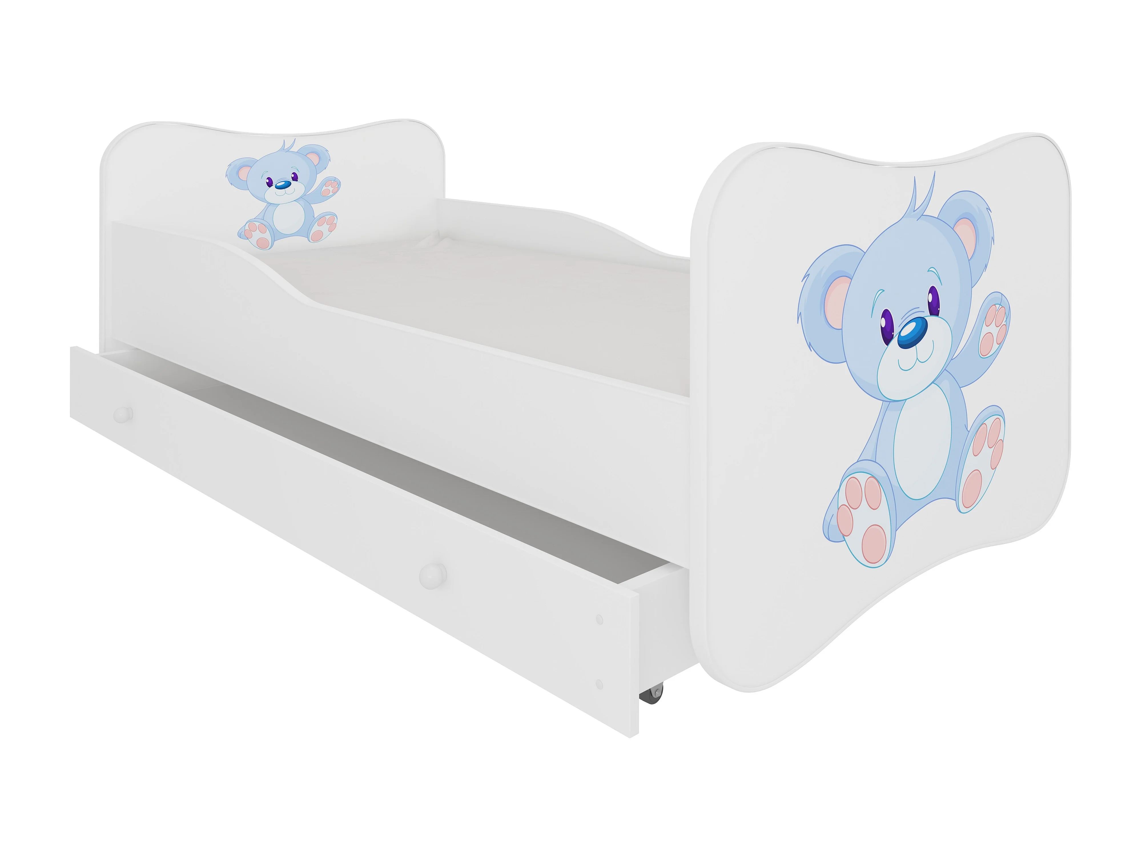 Lit enfant bois blanc à tiroirs avec imprimé ourson bleu 70x140 ou 80x160 - Sommier et matelas inclus - Ondula-80x160