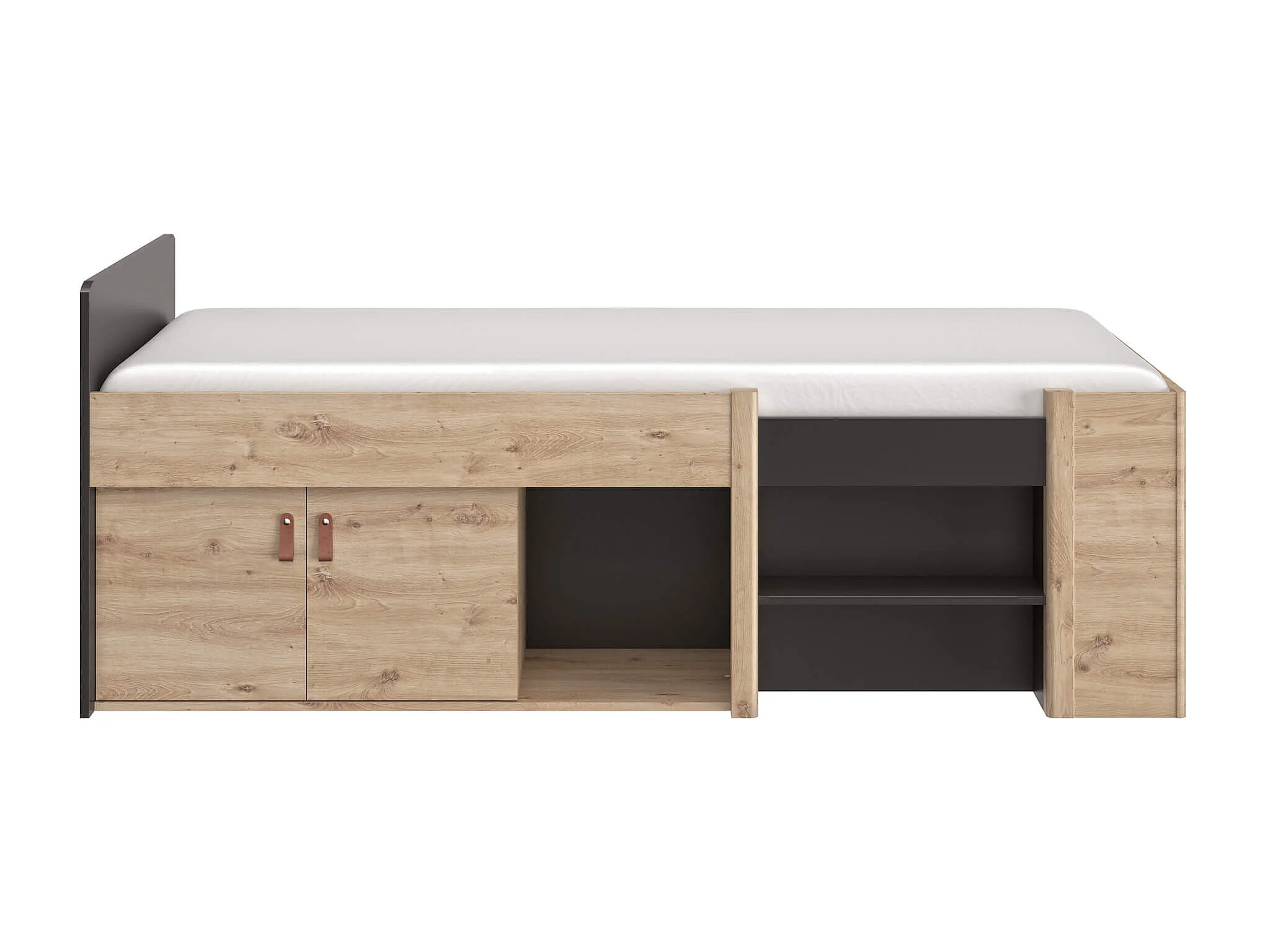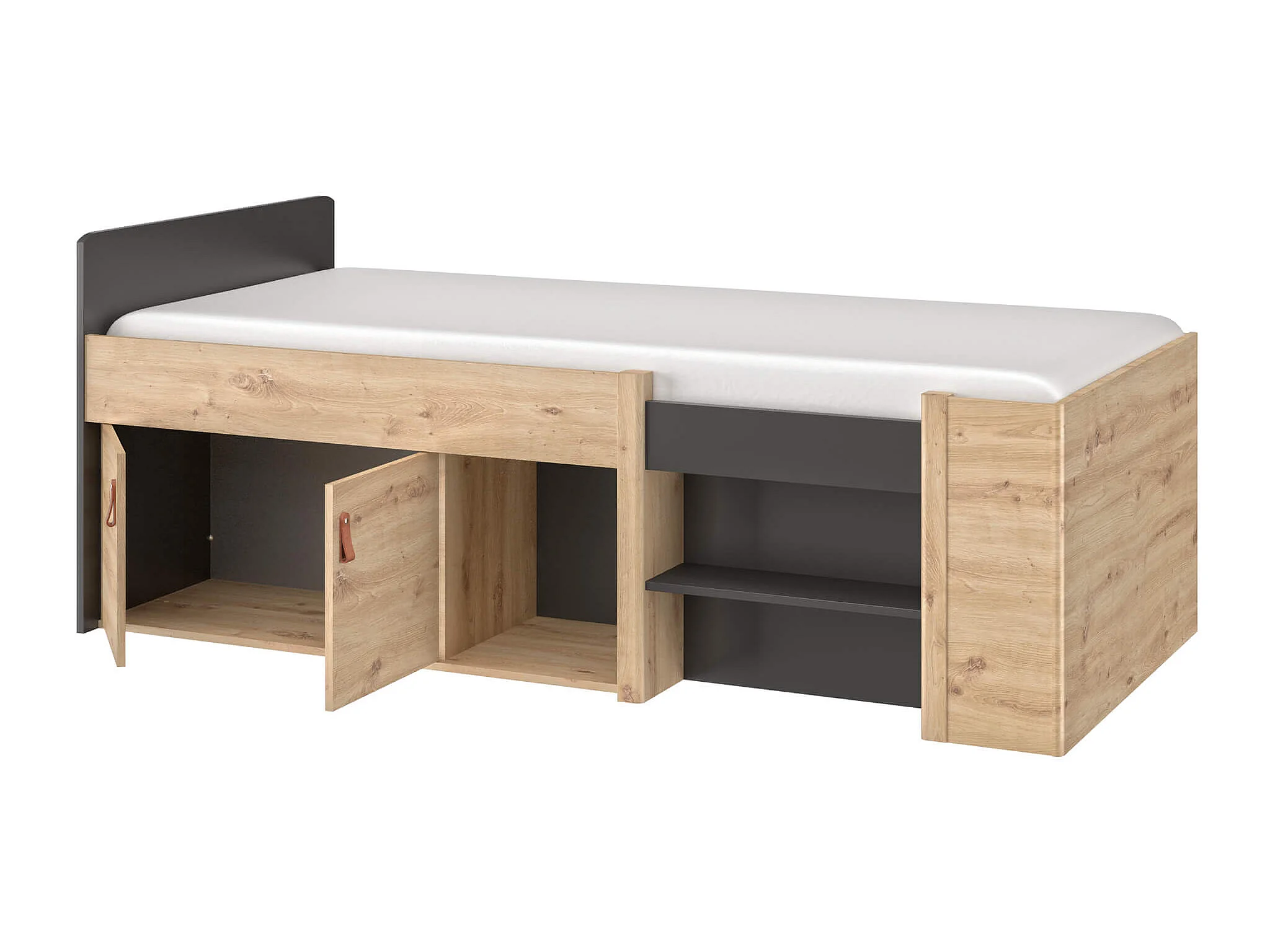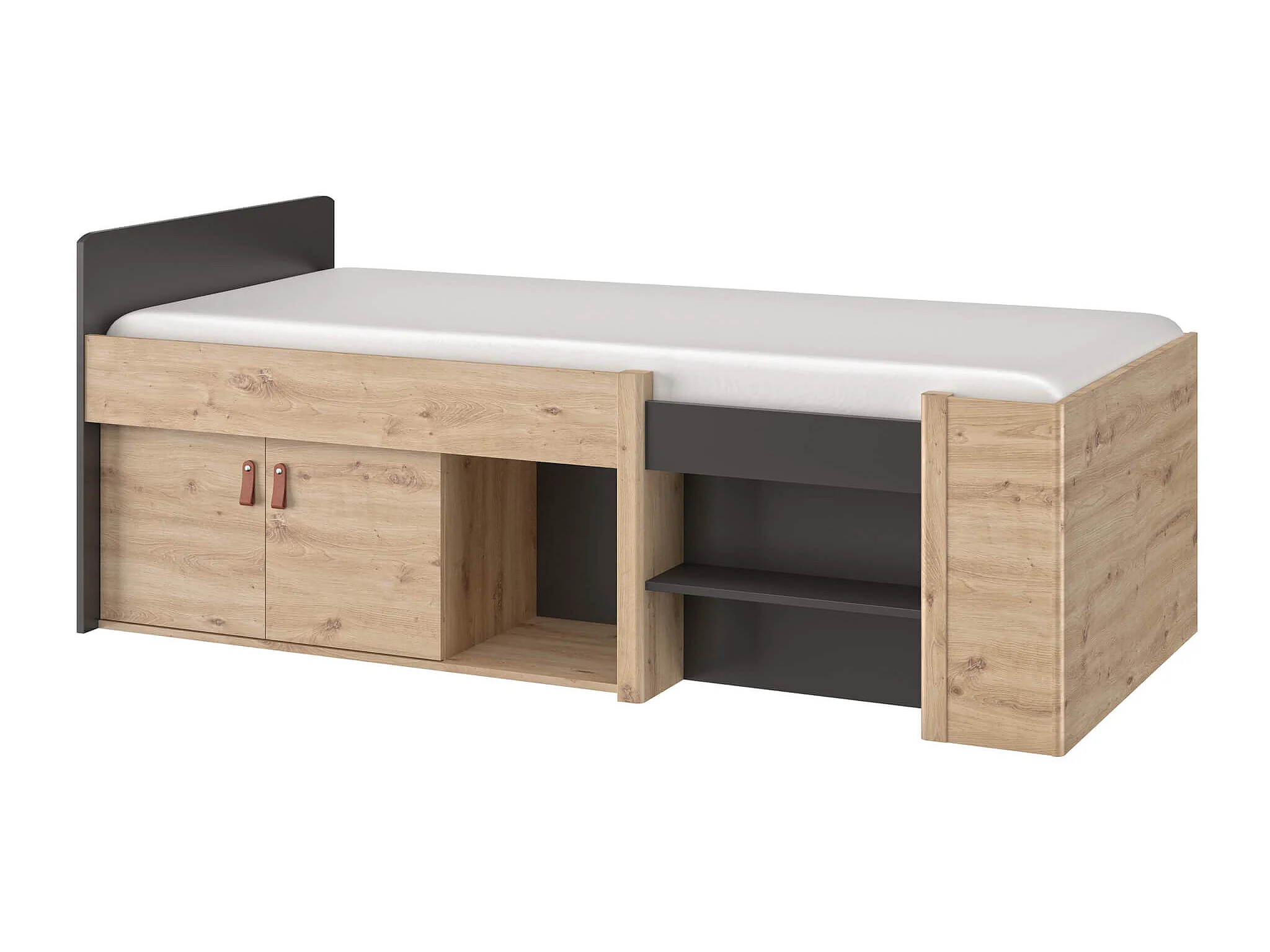 Lit tiroir enfant avec niches de rangement noir et imitation chêne 90x200 - LC5051
