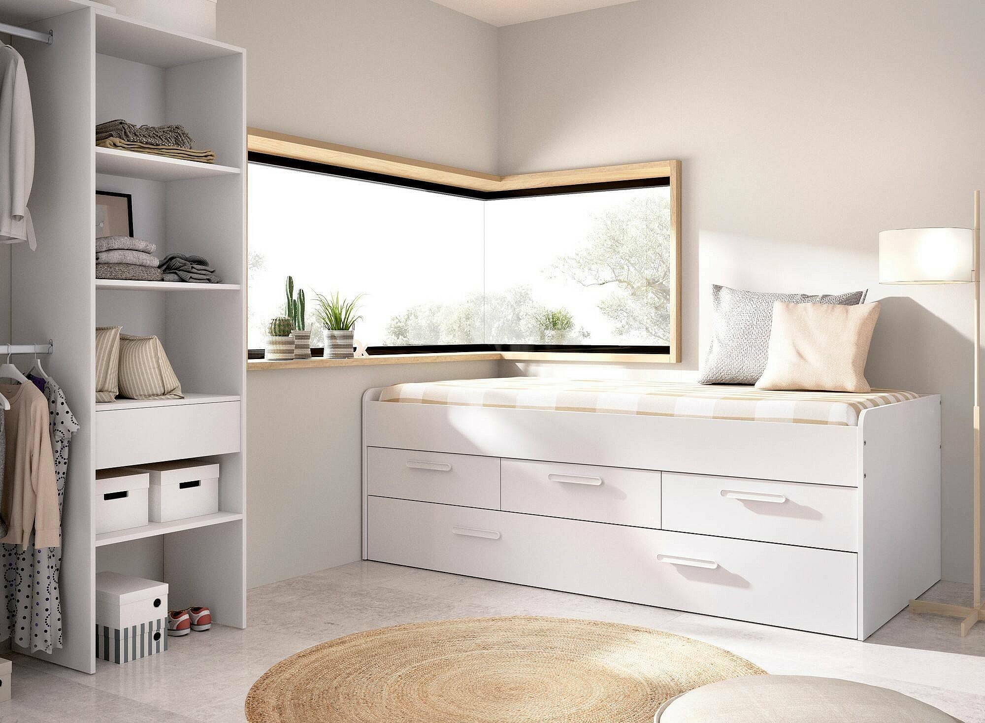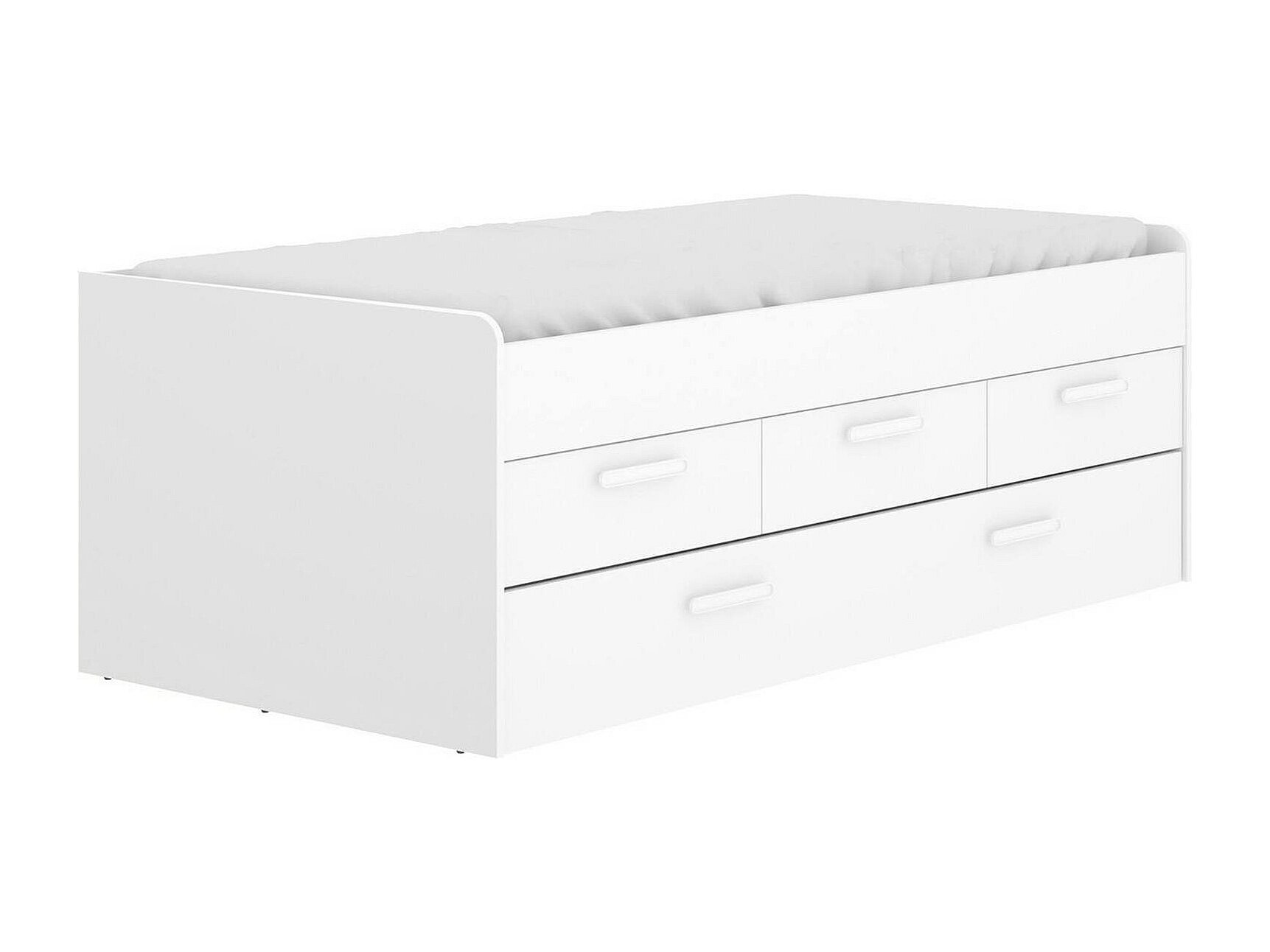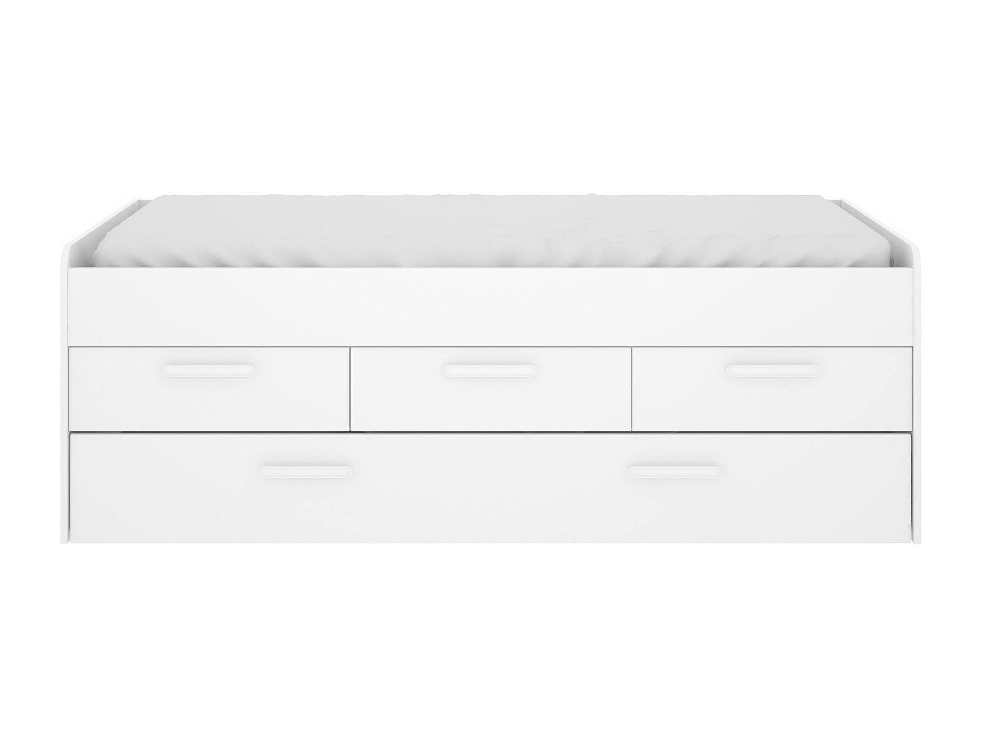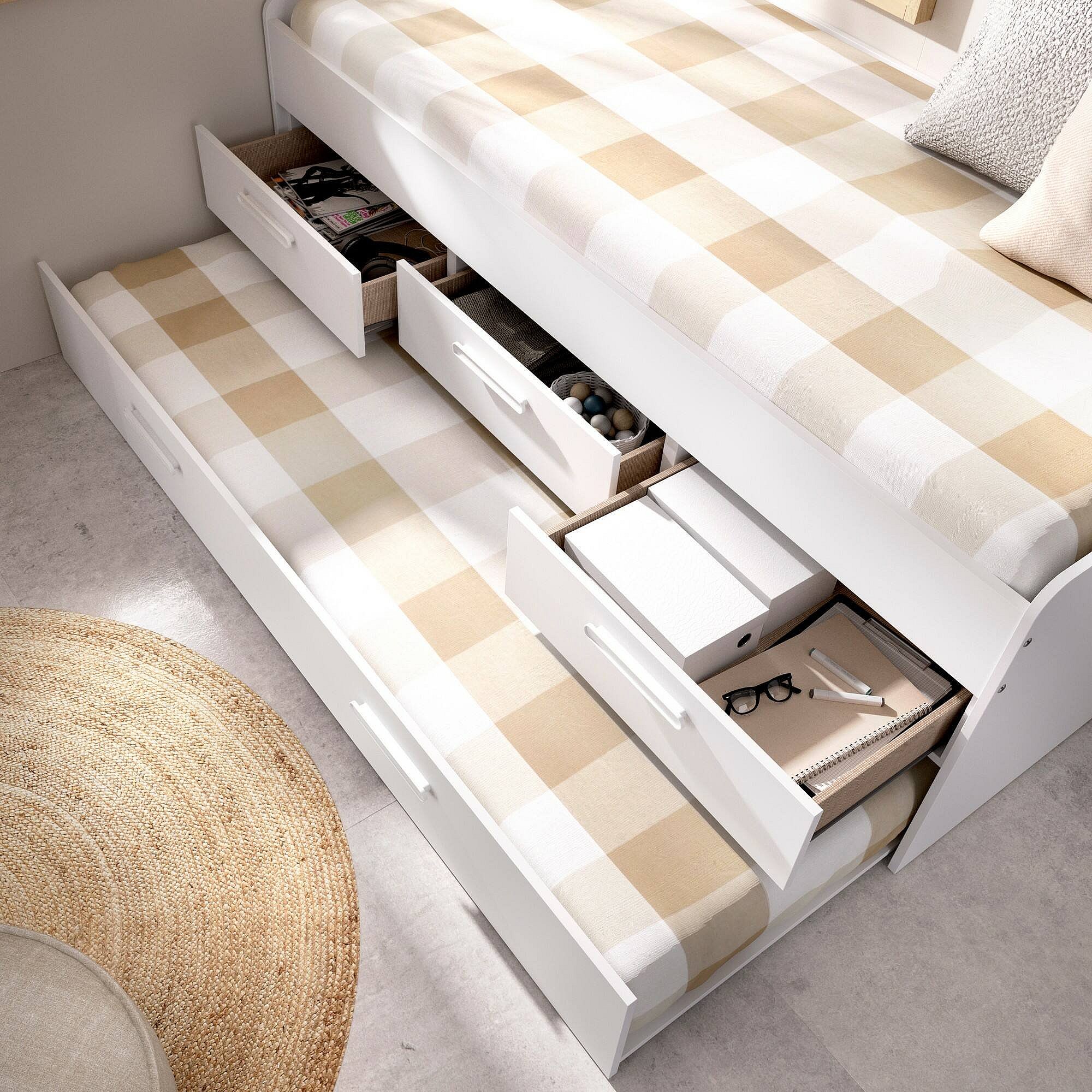Lit enfant Daaron, Structure avec deuxième lit extractible, Lit simple pour chambre avec 3 tiroirs, 194x95h68 cm, Blanc