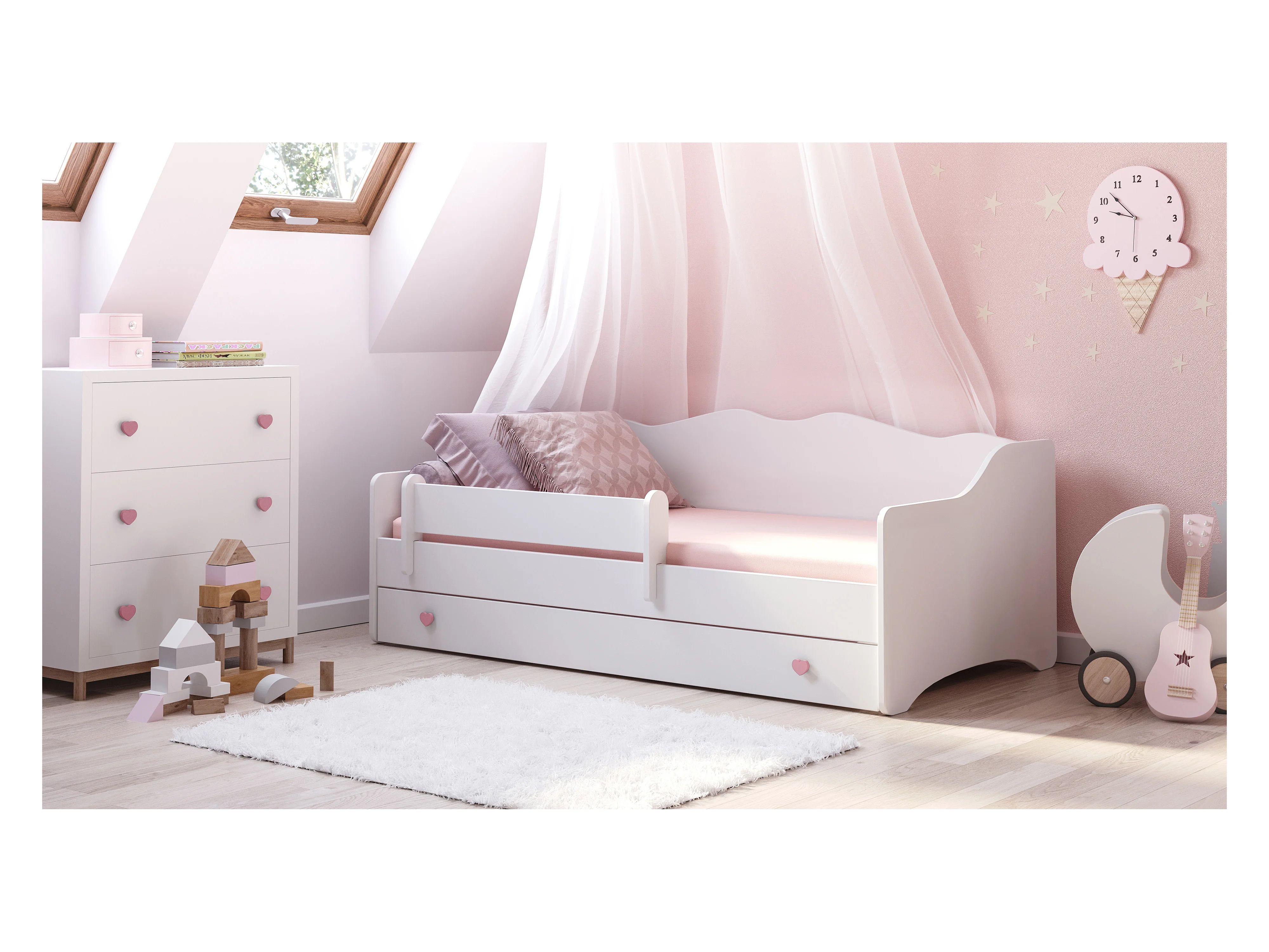 Lit enfant EMY 160x80cm avec tiroir - rose - Avec Matelas - Sans graphique