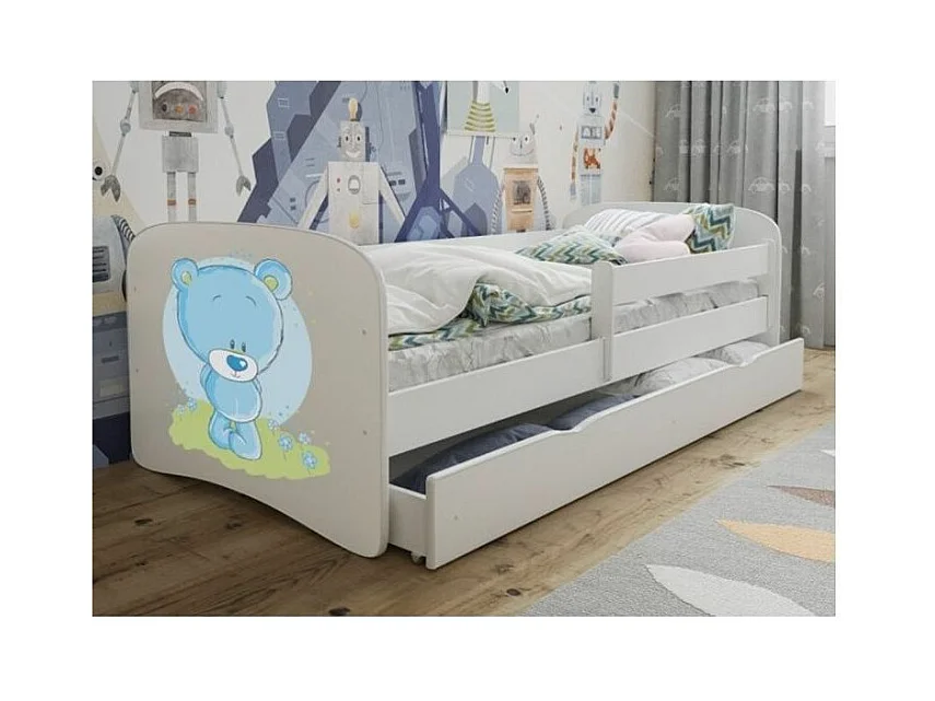 Lit enfant nounours avec sommiers et barrière de sécurité amovible Drimy-Matelas mousse-80x180