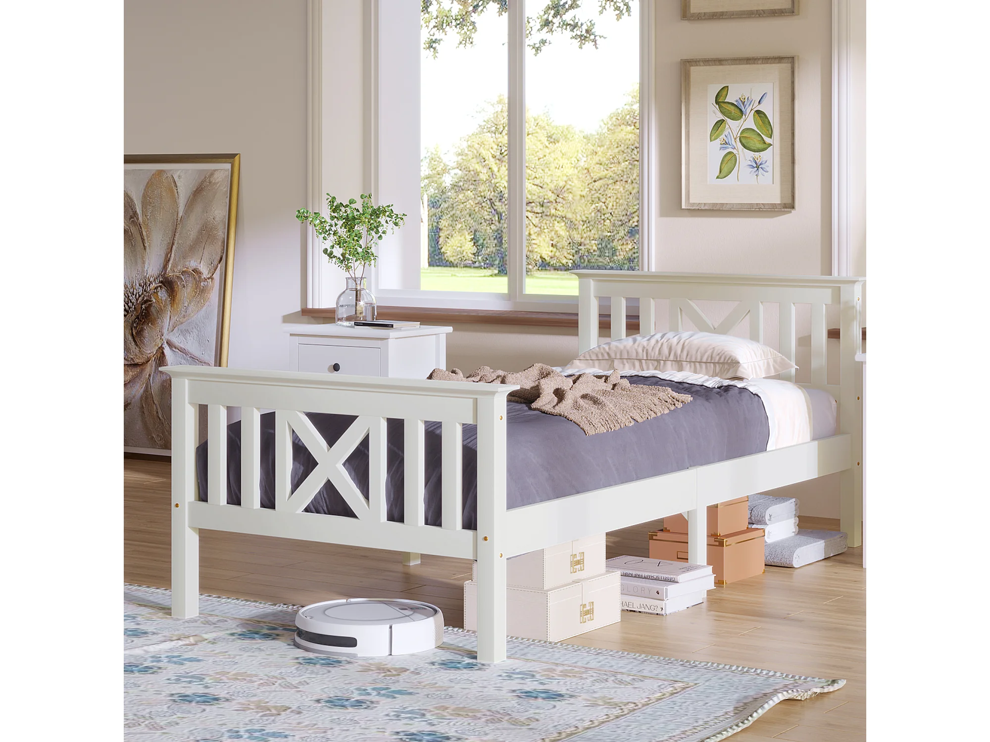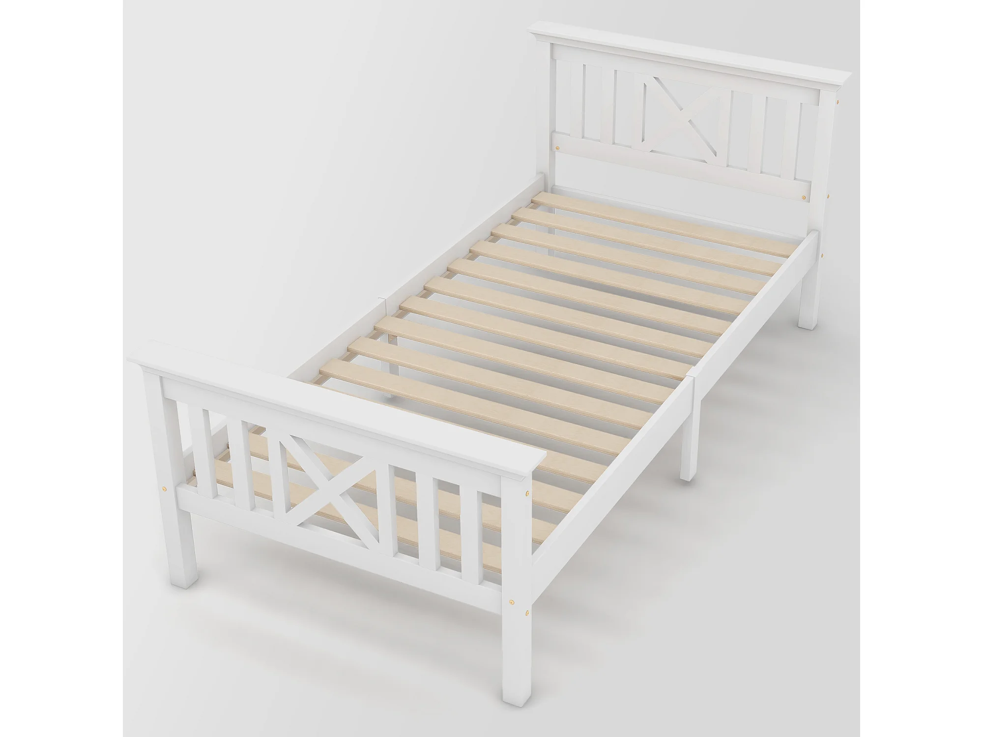 Lit enfant 90x200 cm avec sommier à lattes - cadre de lit en bois - blanc (sans matelas)