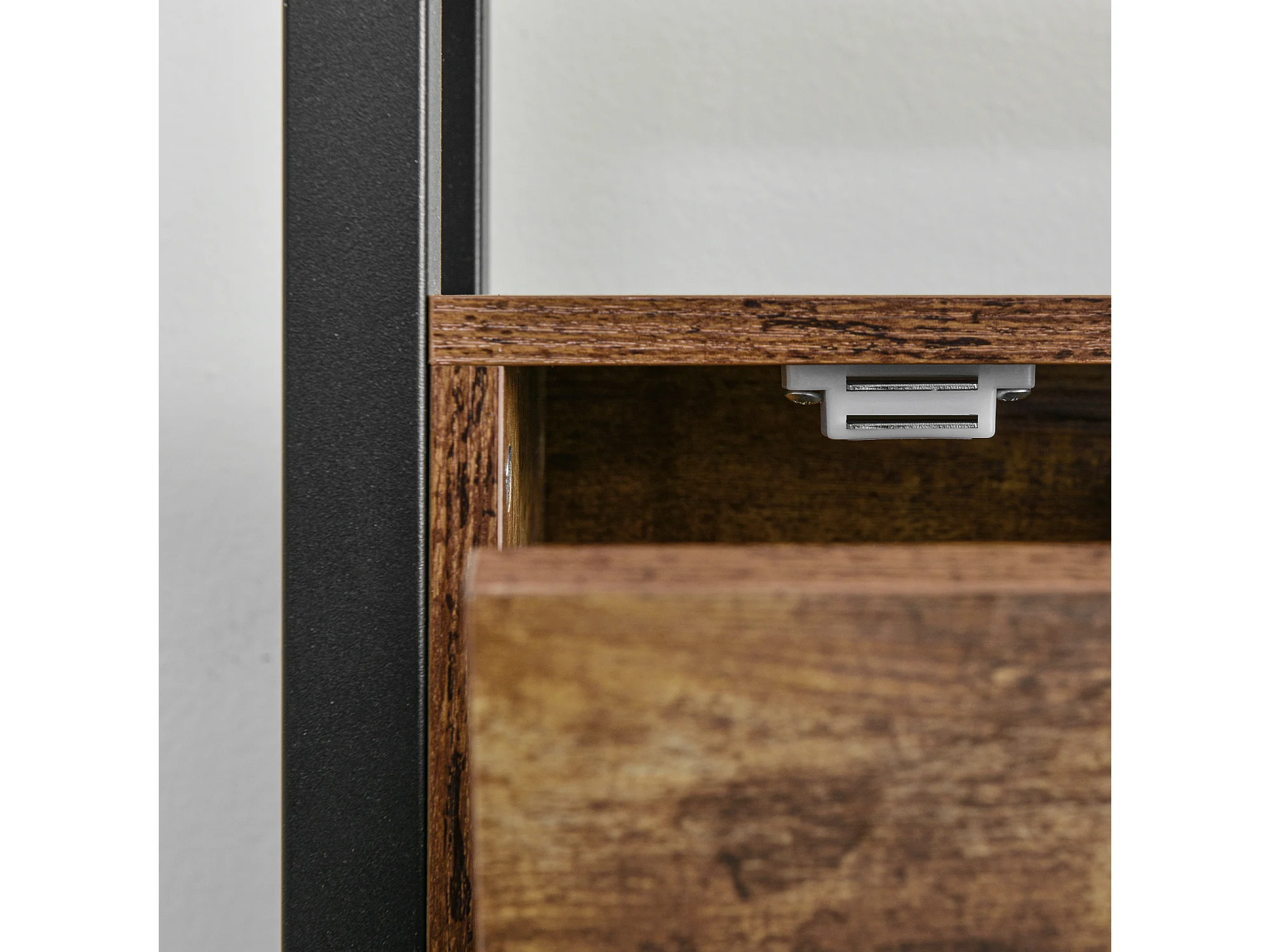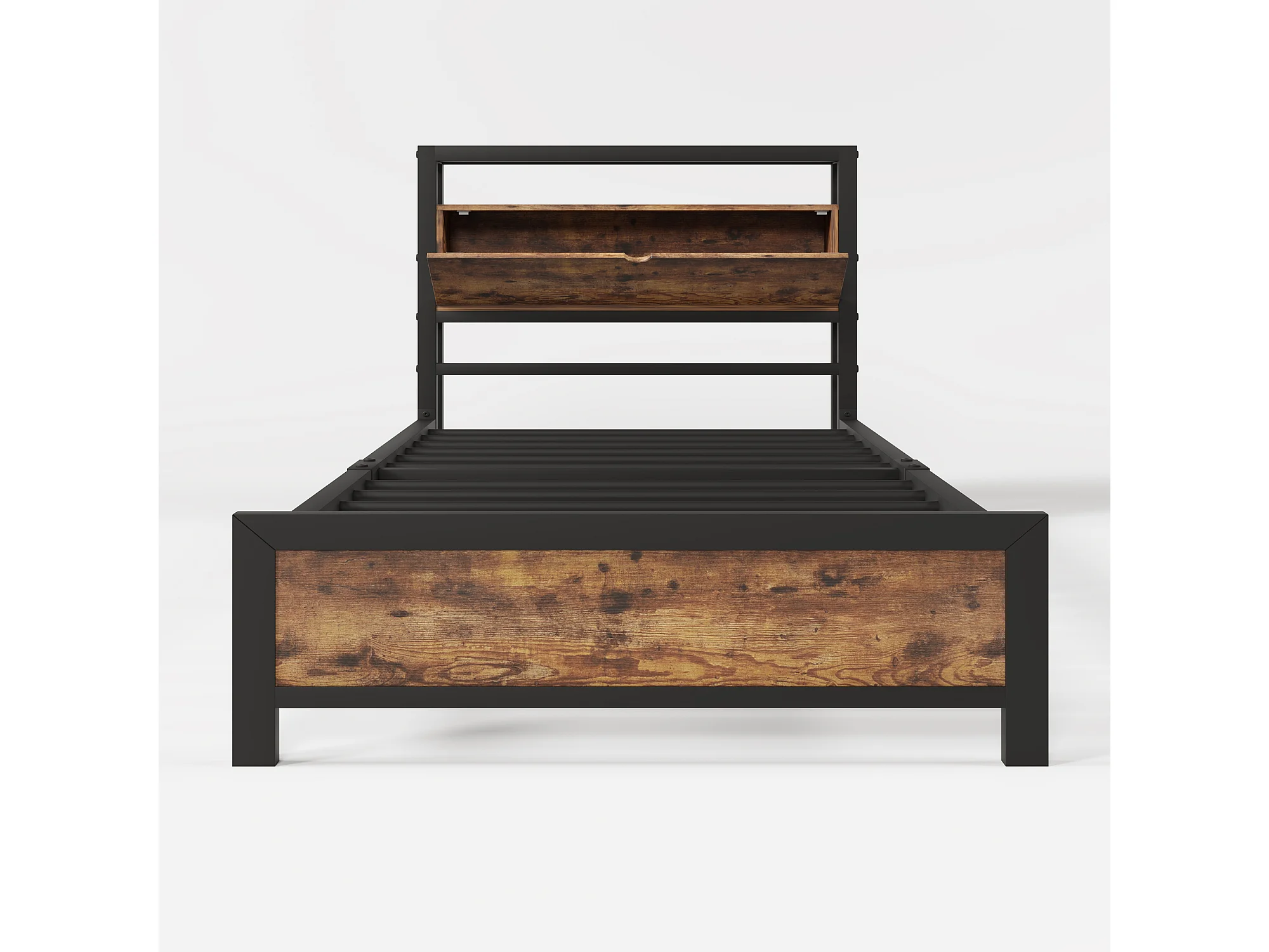 Lit enfant 90x200 cm avec sommier métallique - tête de lit rangement - cadre de lit en métal - marron (sans matelas)