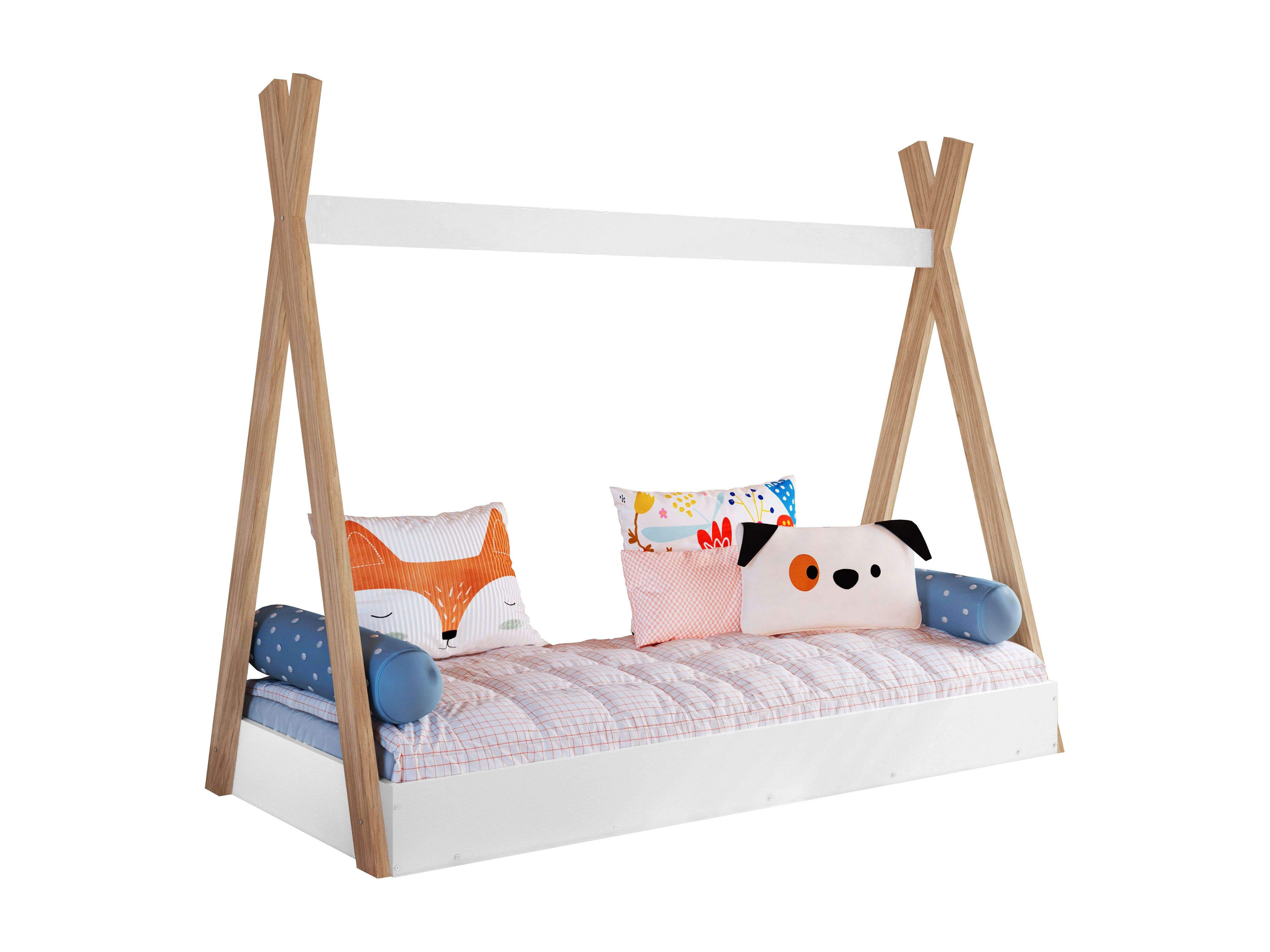 Lit enfant Tipi en blanc mat/chêne 80x190 cm
