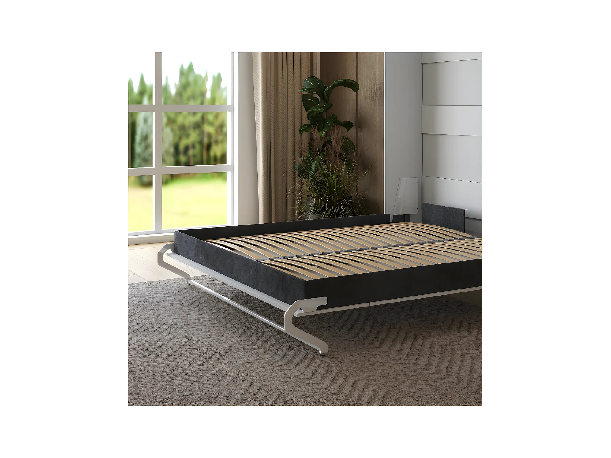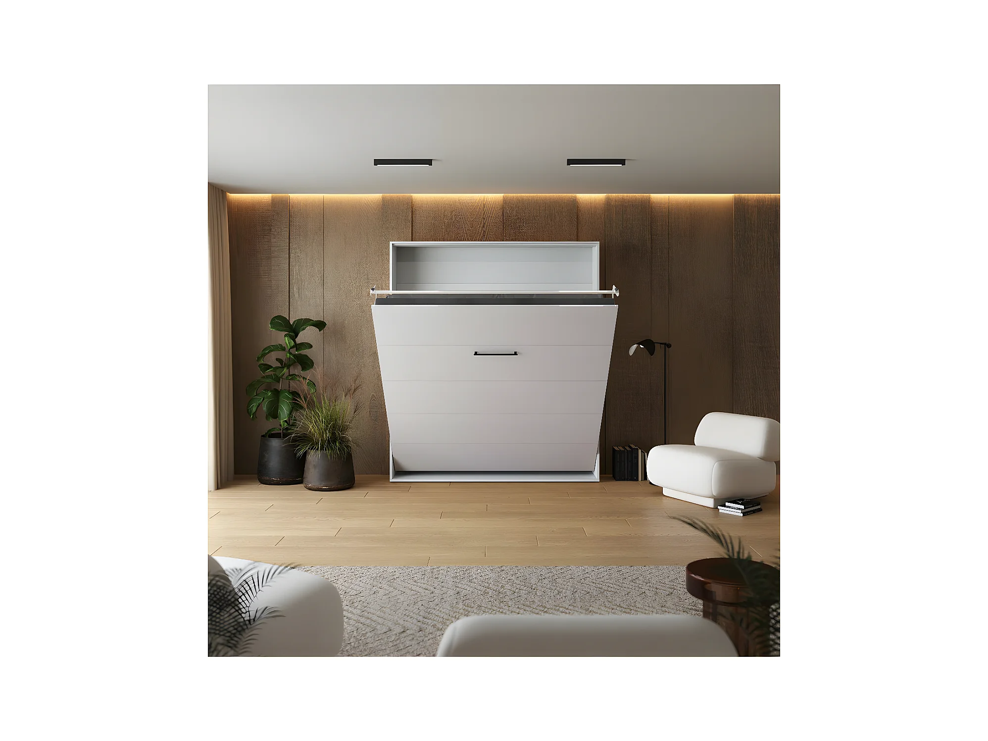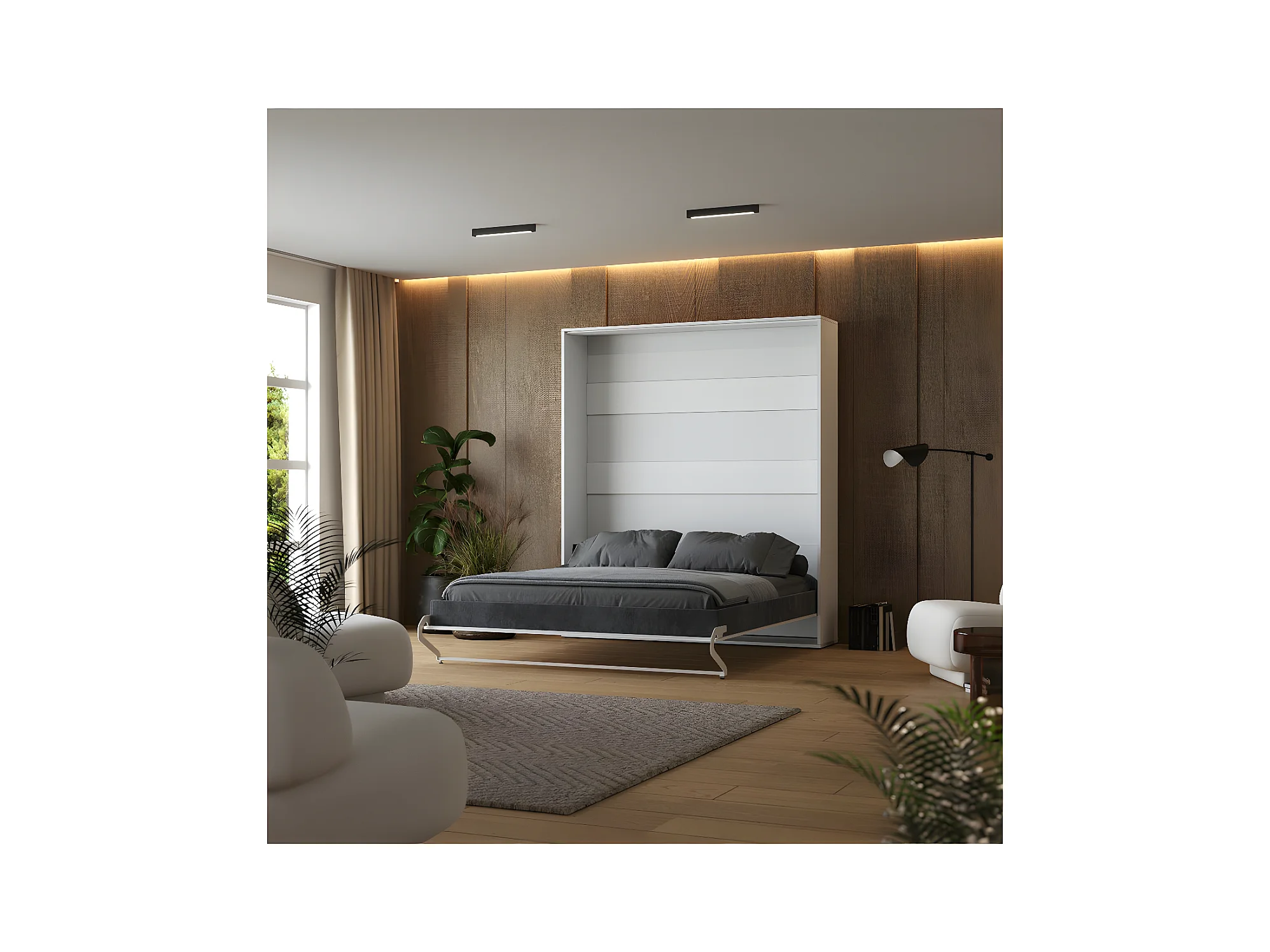 Lit escamotable 180x200cm Vertical Lit Mural SUP M1 avec cadre rembourré Blanc/Blanc brillant