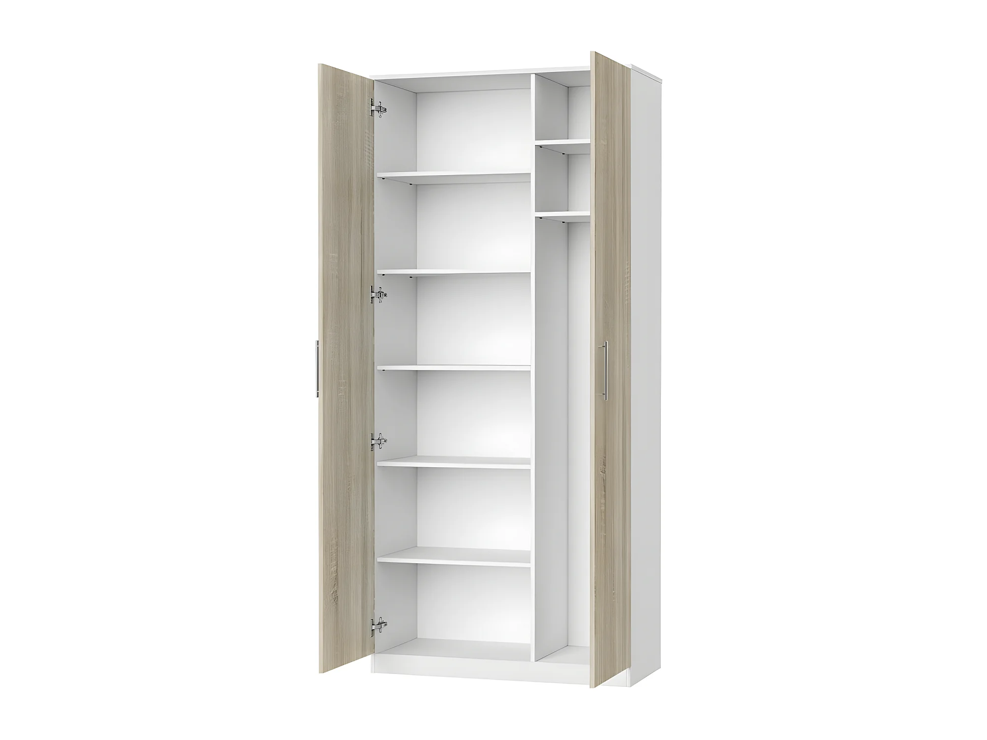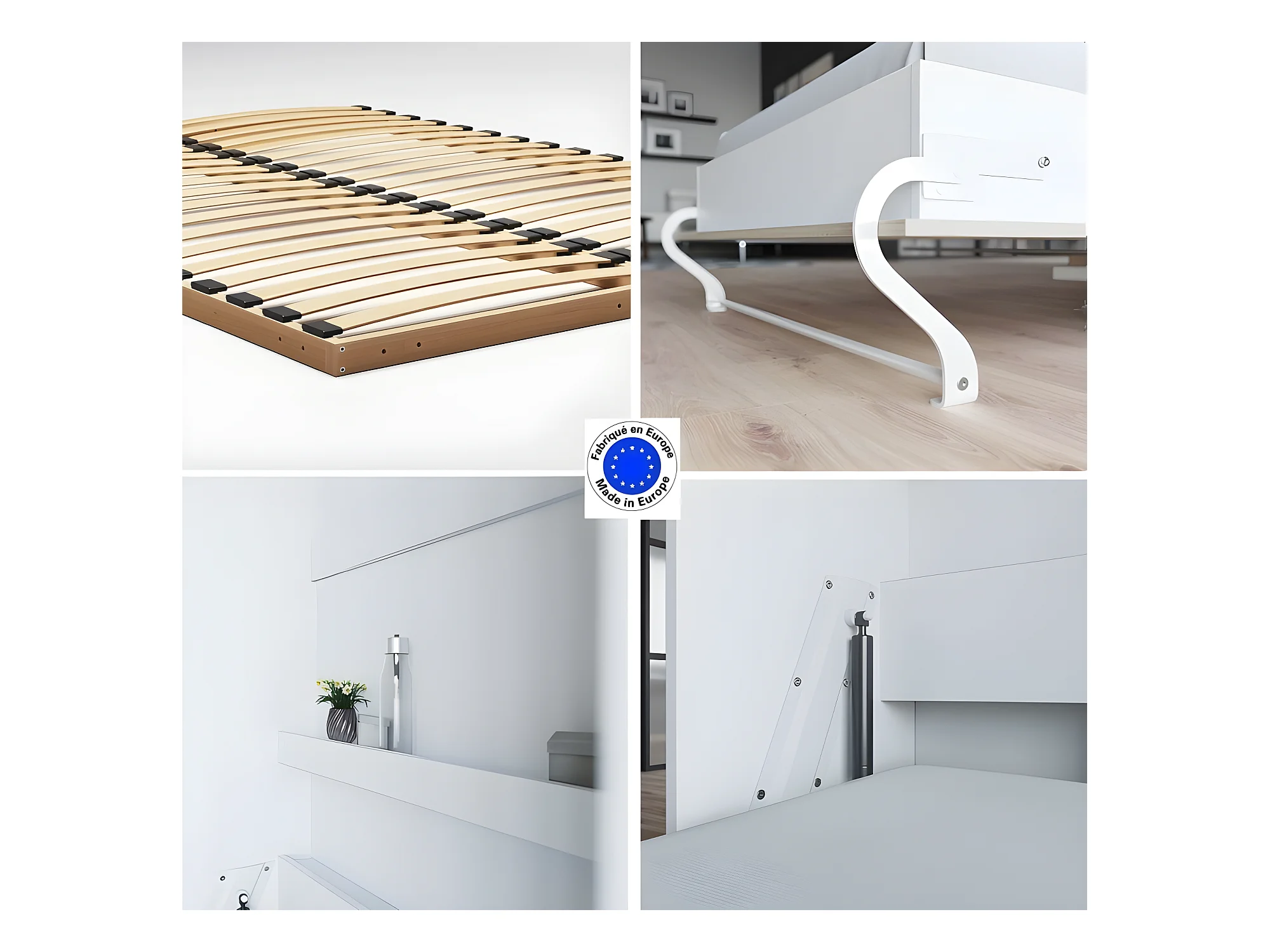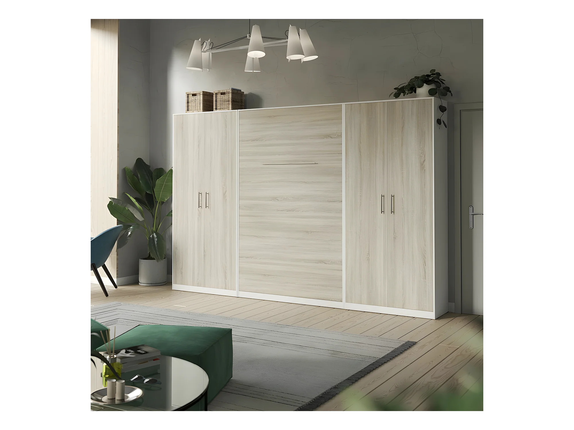 Lit escamotable +2 Placards Vertical 140x200+(100x2)cm Lit Rabattable Lit Mural Standard Blanc /Chêne Sonoma