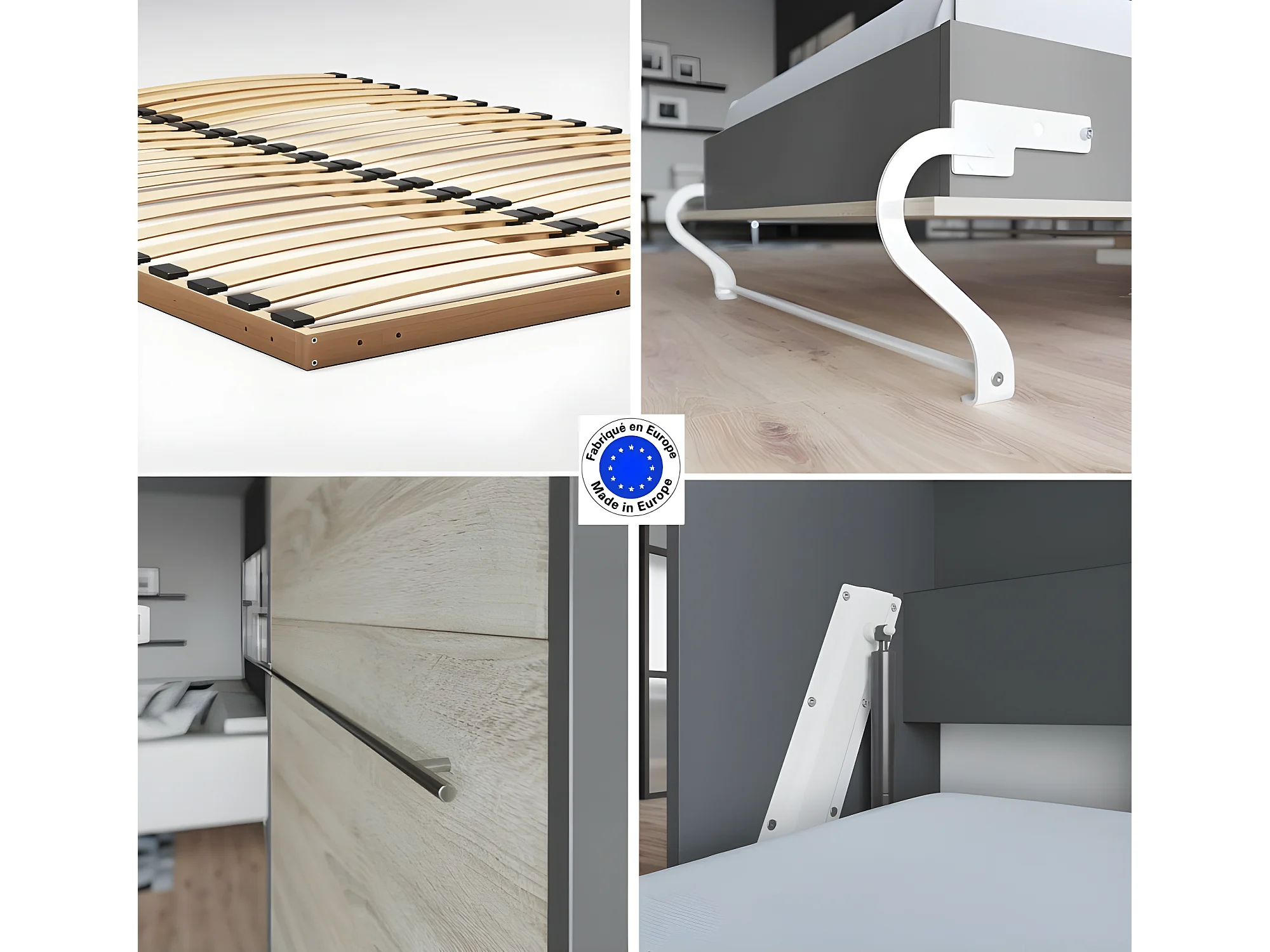 Lit escamotable +2 Placards Vertical 140x200+(50x2)cm Lit Rabattable Lit Mural Standard Anthracite/Chêne Sonoma