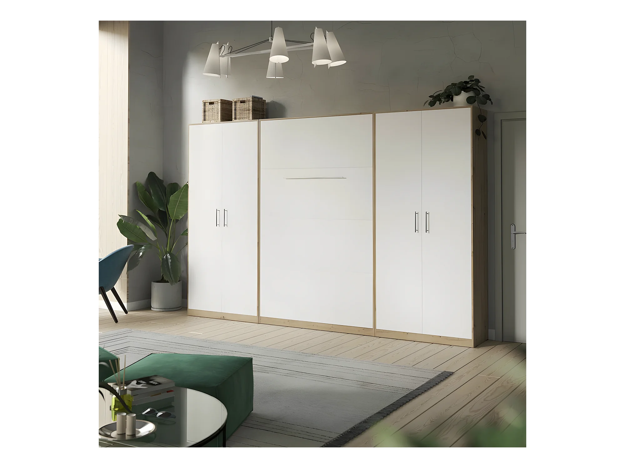 Lit escamotable +2 Placards Vertical 140x200+(80x2)cm Lit Rabattable Lit Mural Standard Chêne Sauvage/blanc
