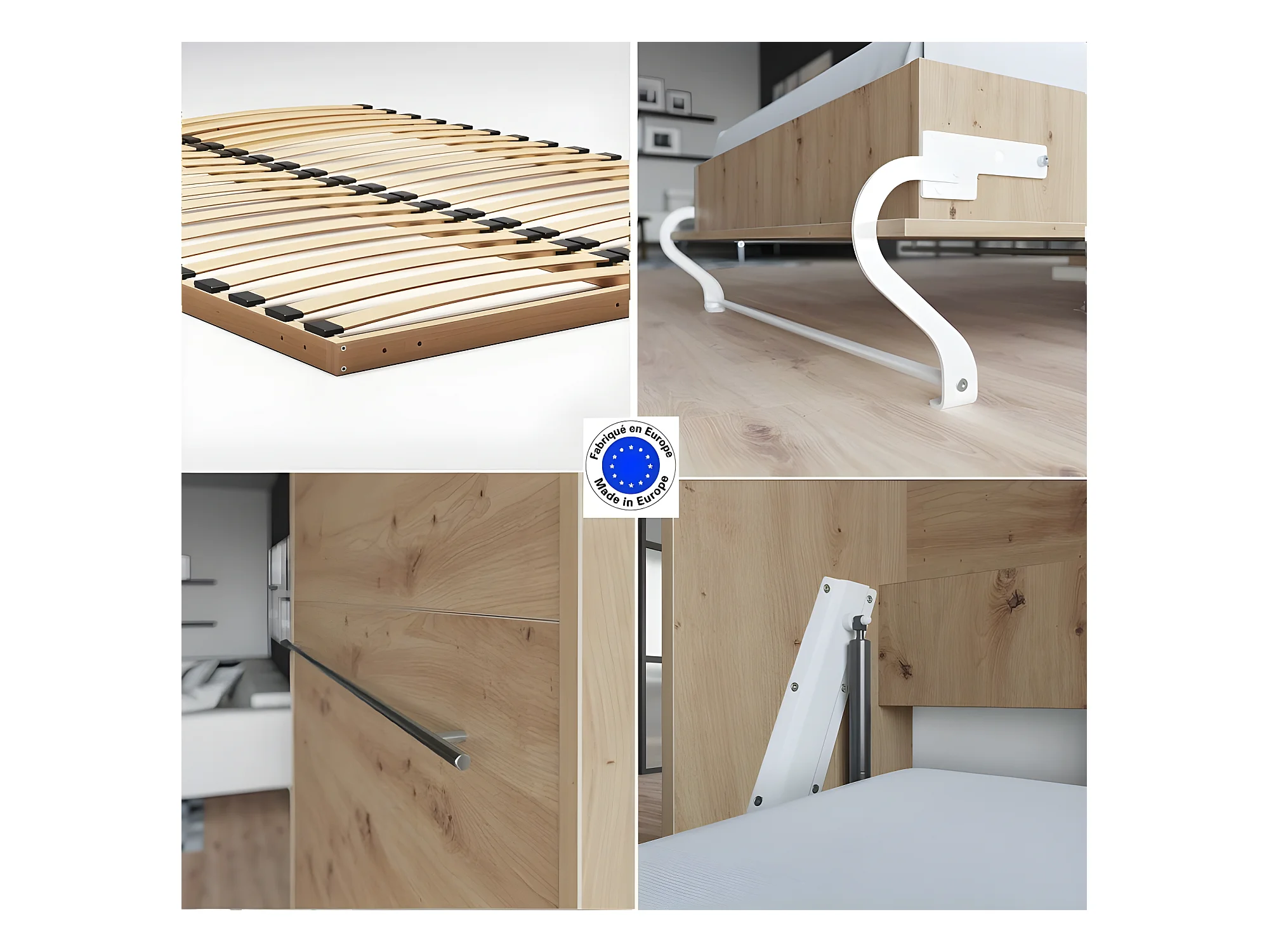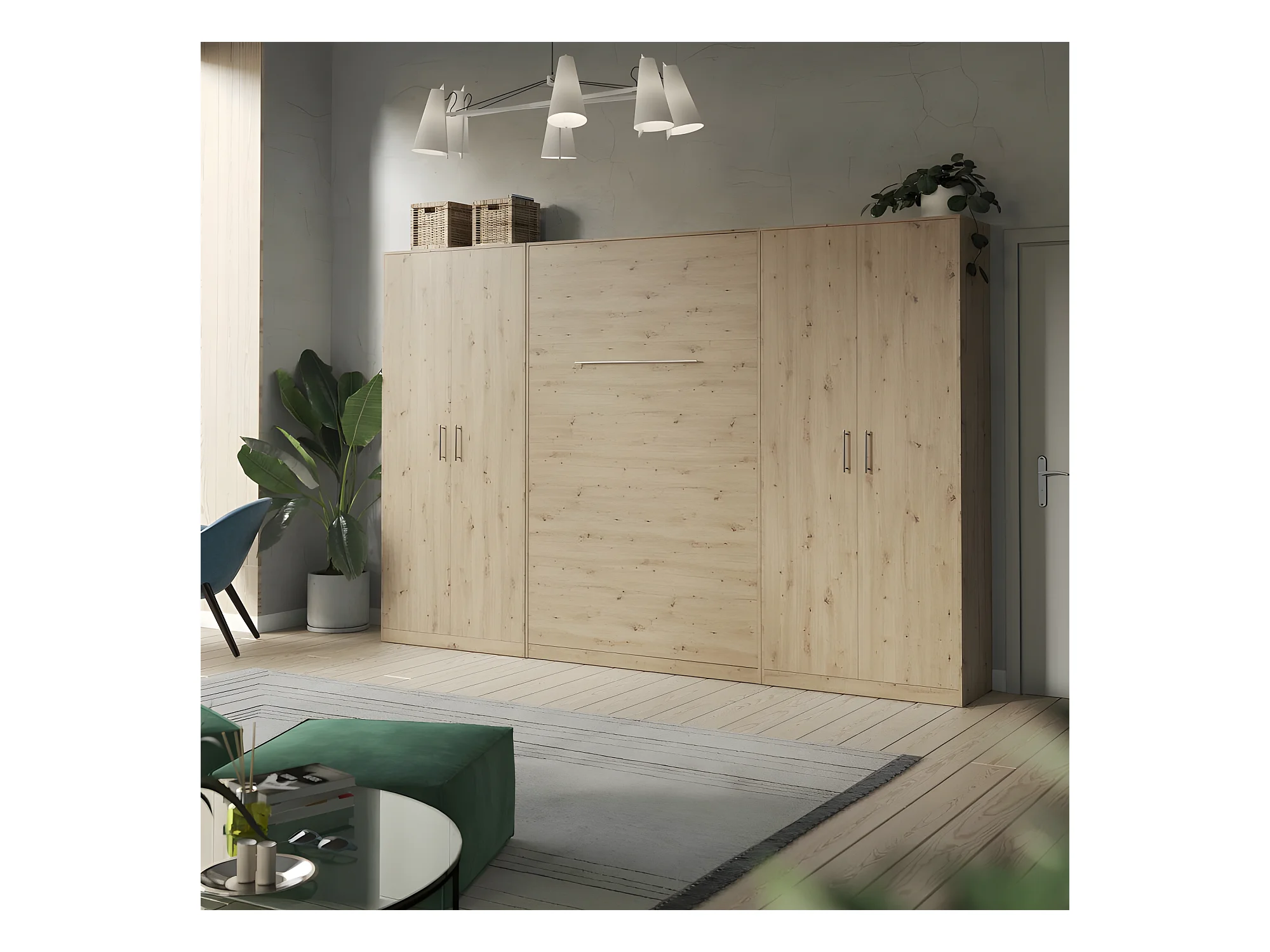 Lit escamotable +2 Placards Vertical 140x200+(80x2)cm Lit Rabattable Lit Mural Standard Chêne Sauvage/Chêne Sauvage