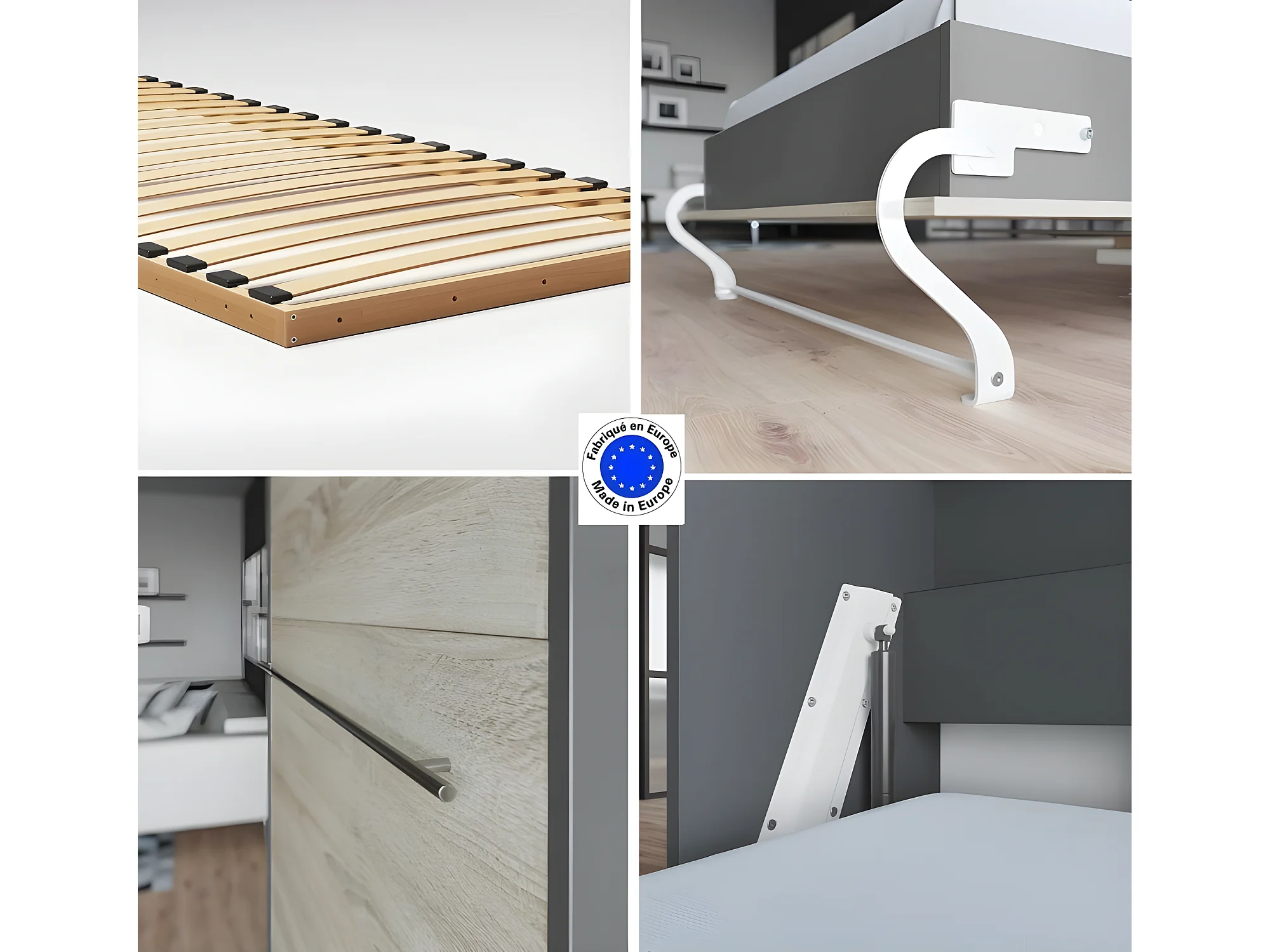Lit escamotable +2 Placards Vertical 90x200+(100x2)cm Lit Rabattable Lit Mural Standard Anthracite/Chêne Sonoma