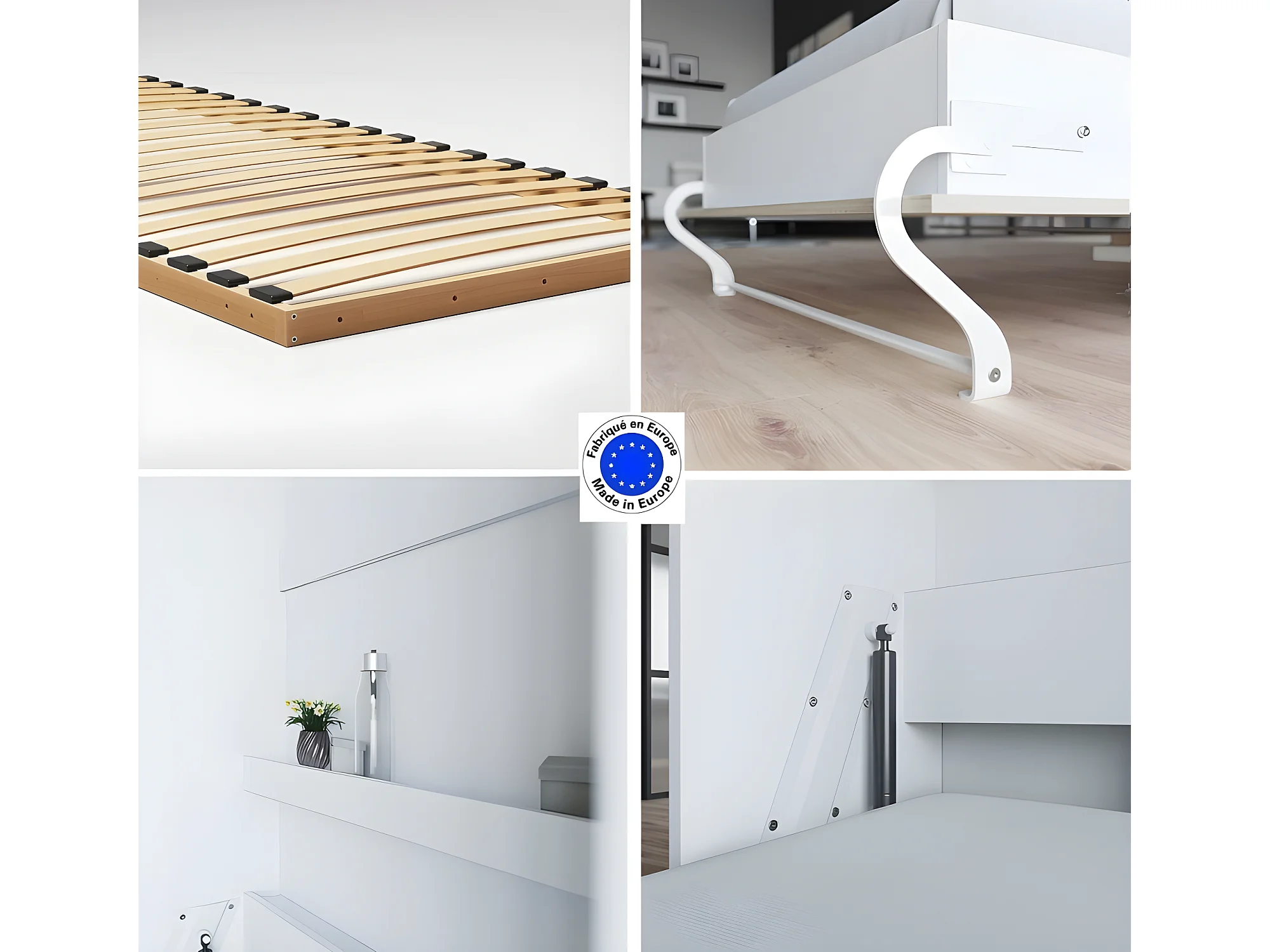 Lit escamotable +2 Placards Vertical 90x200+(100x2)cm Lit Rabattable Lit Mural Standard Blanc /Chêne Sonoma