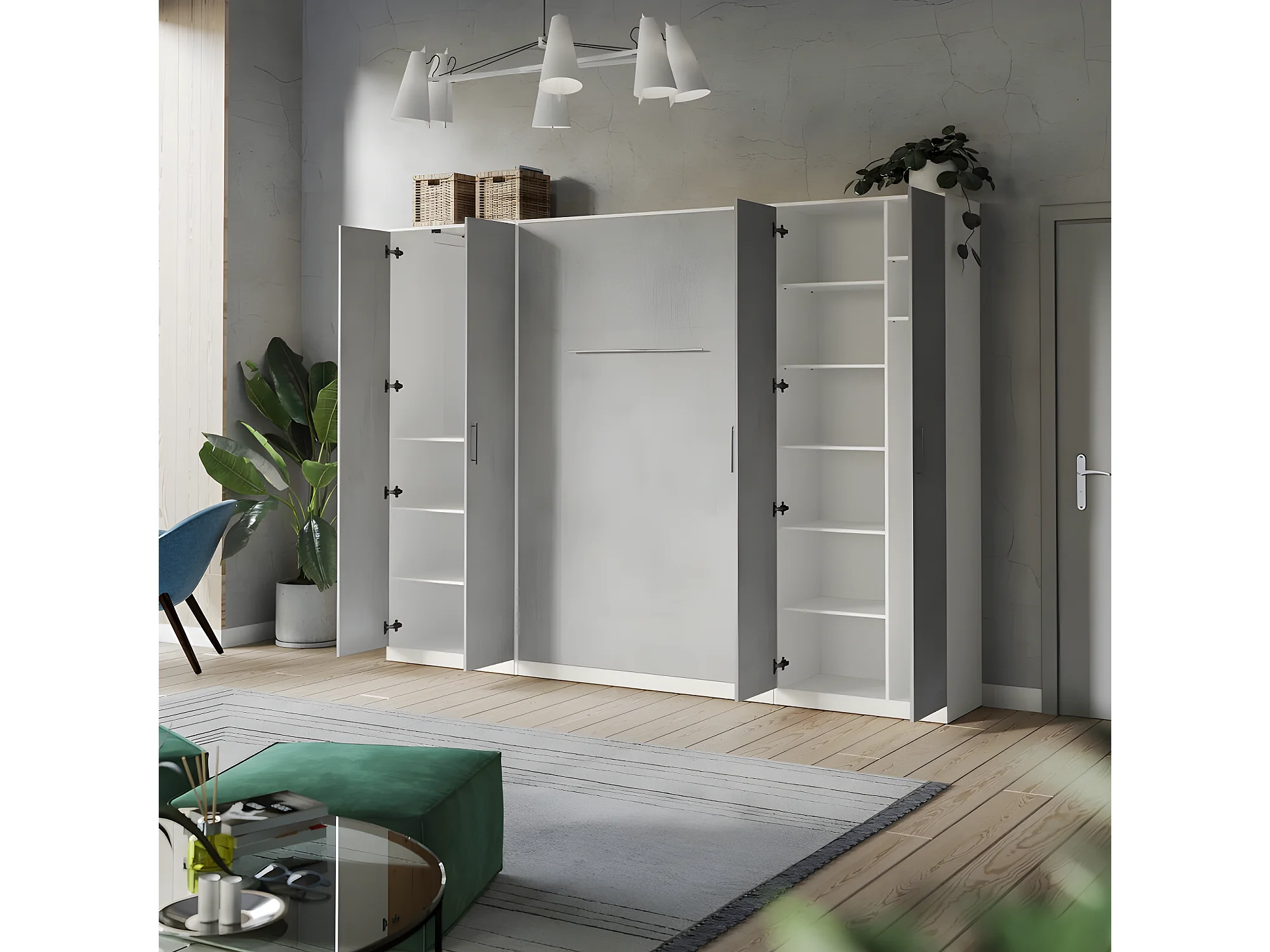 Lit escamotable +2 Placards Vertical 90x200+(80x2)cm Lit Rabattable Lit Mural Standard Blanc/Béton