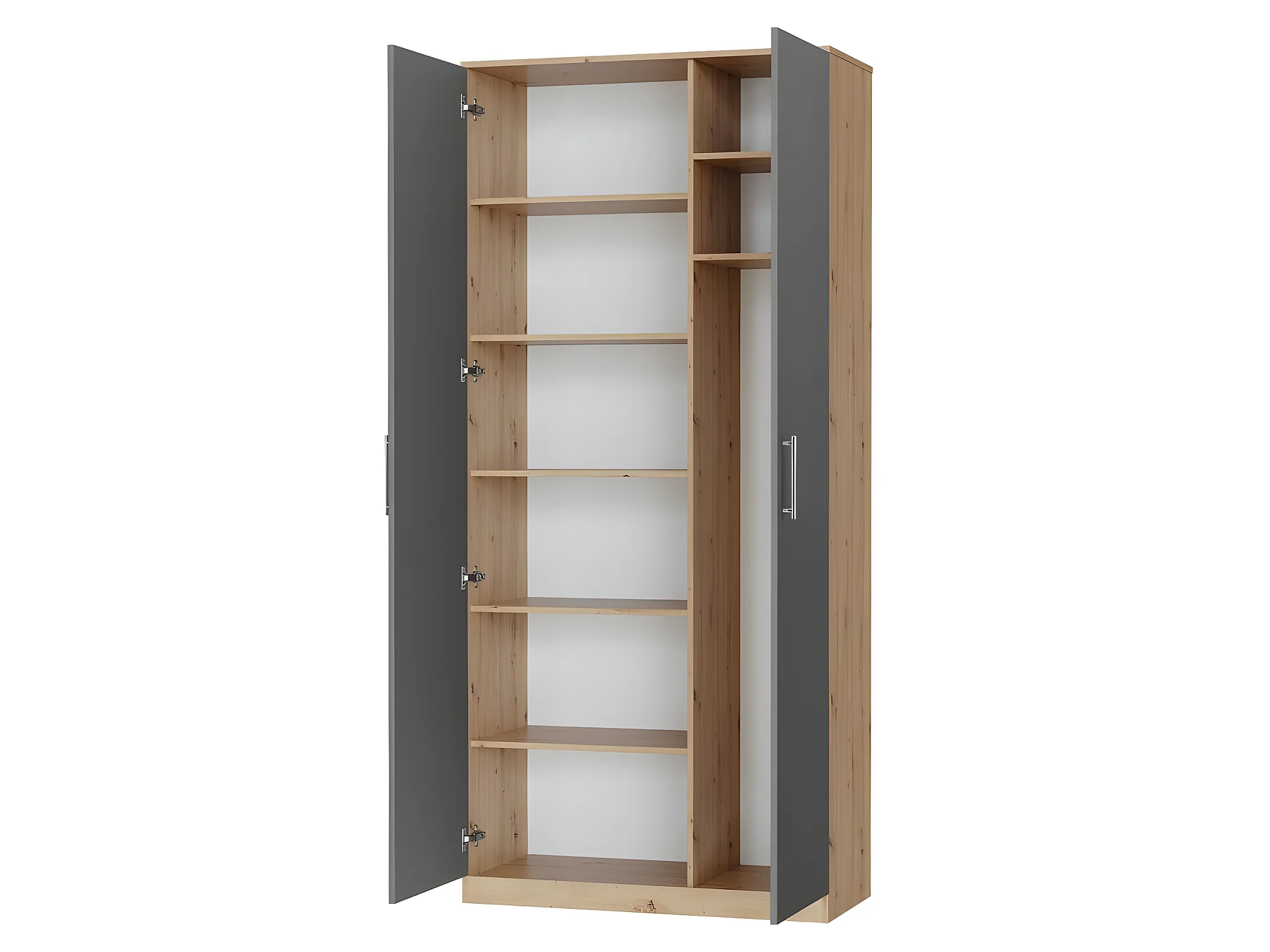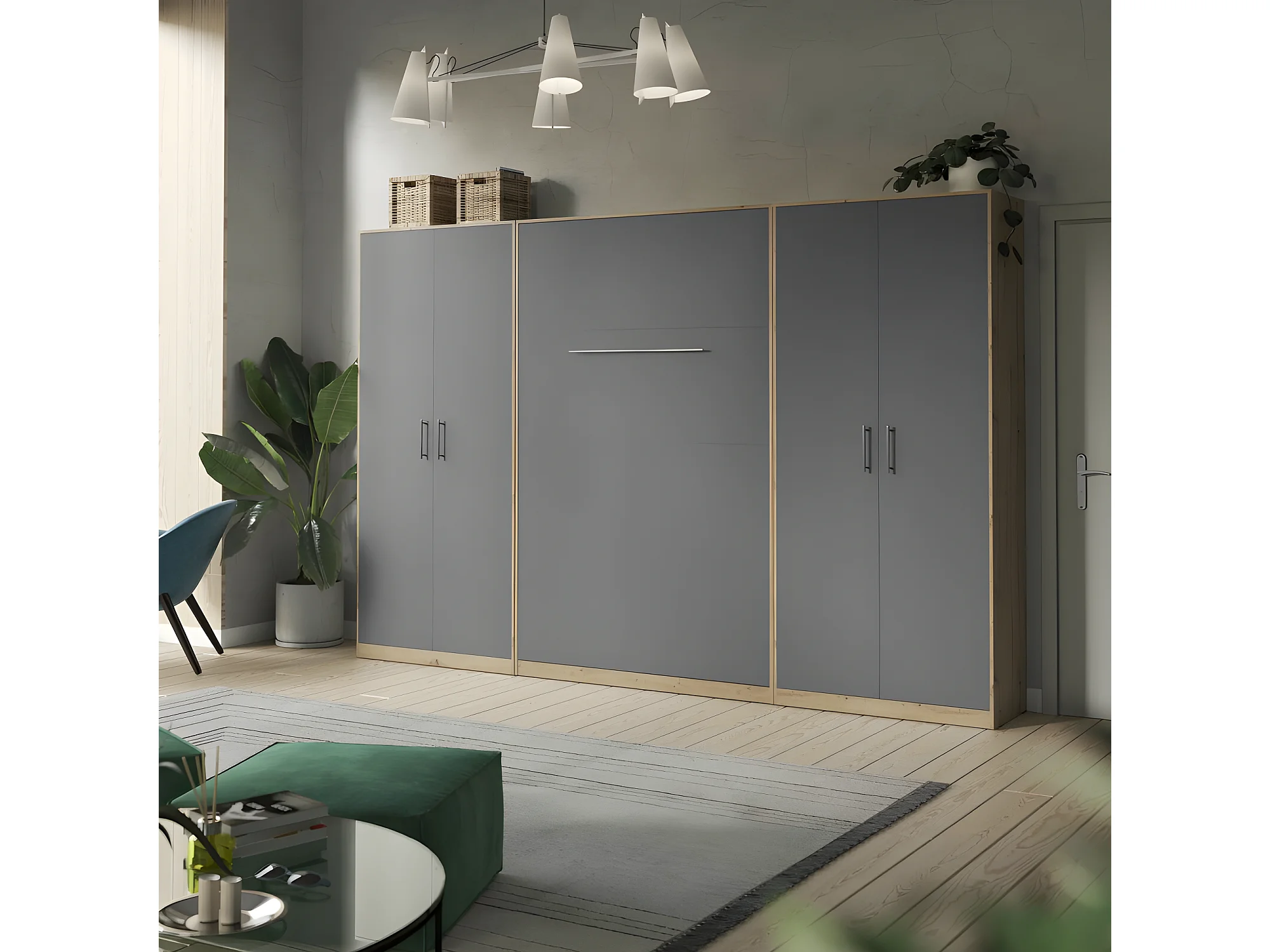 Lit escamotable +2 Placards Vertical 90x200+(80x2)cm Lit Rabattable Lit Mural Standard Chêne Sauvage/Anthracite
