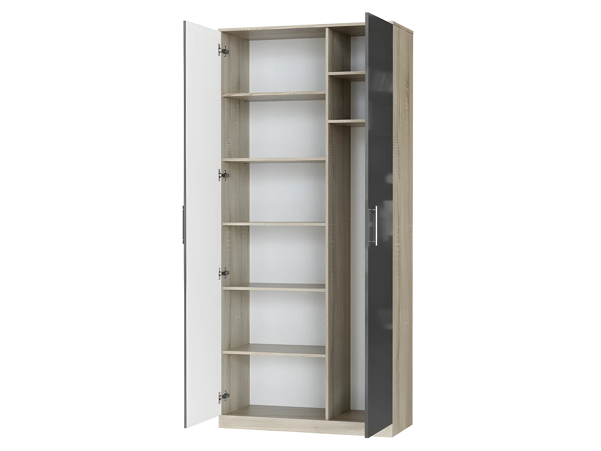Lit escamotable +2 Placards Vertical 90x200+(80x2)cm Lit Rabattable Lit Mural Standard Chêne Sonoma/Anthracite brillant