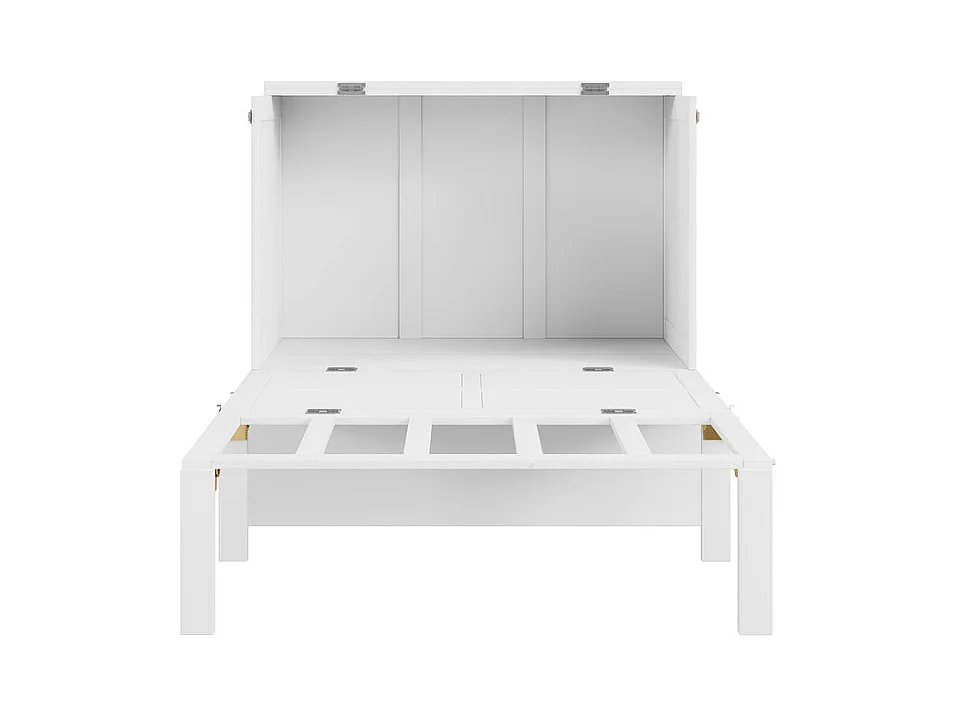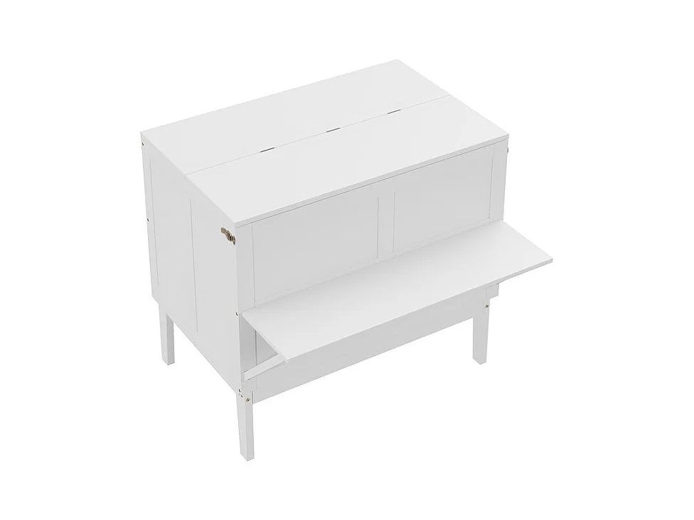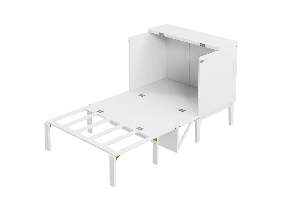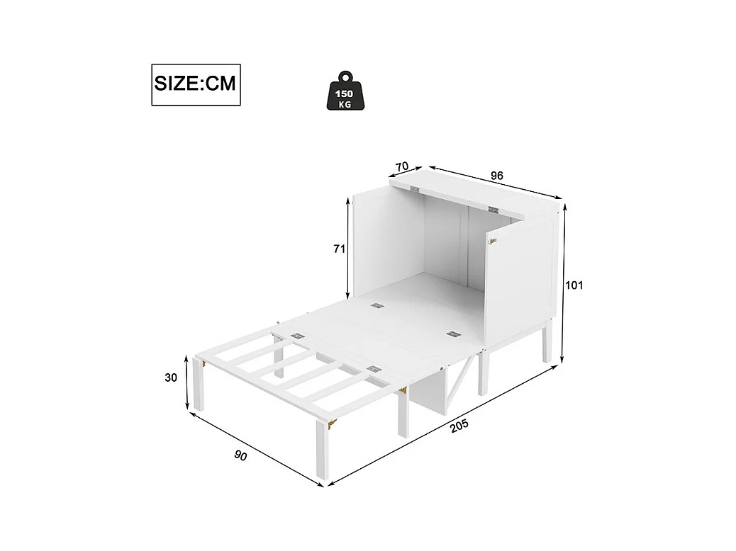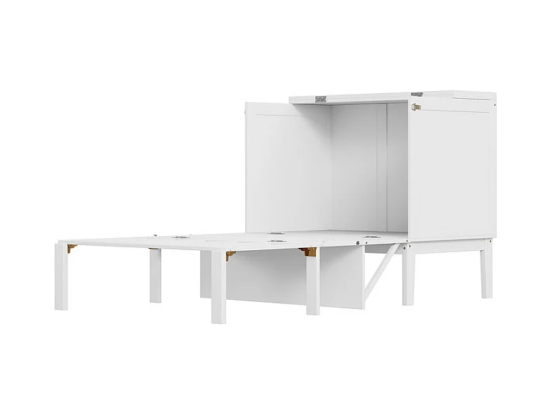 Lit escamotable 90x200 cm en bois - avec sommier à lattes - charge max 150kg - Blanc
