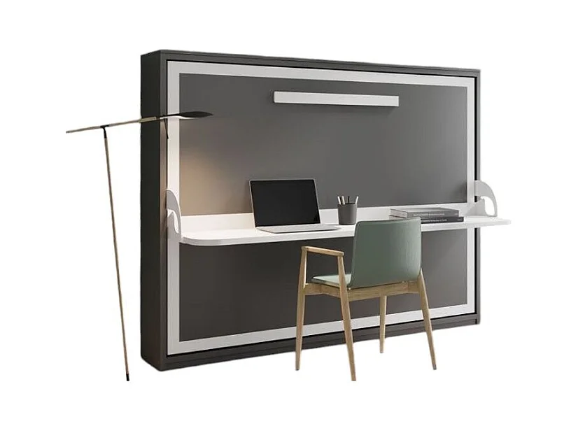 Lit escamotable avec bureau 90x200 anthracite P 35 Kinoa
