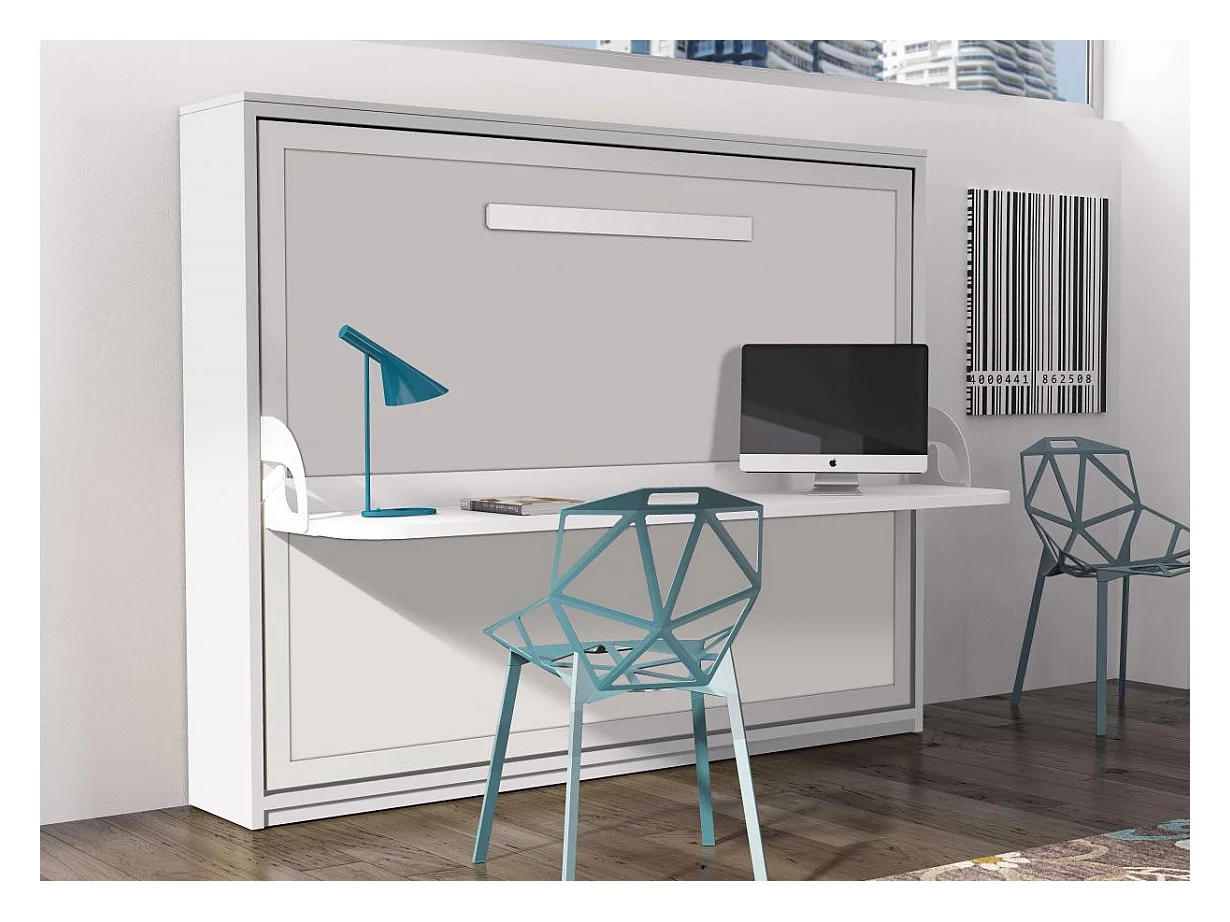 Lit escamotable avec bureau 90x200 blanc satiné P 35 Kinoa