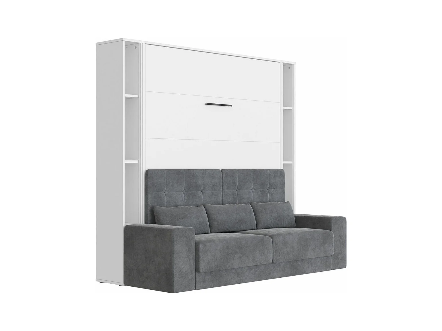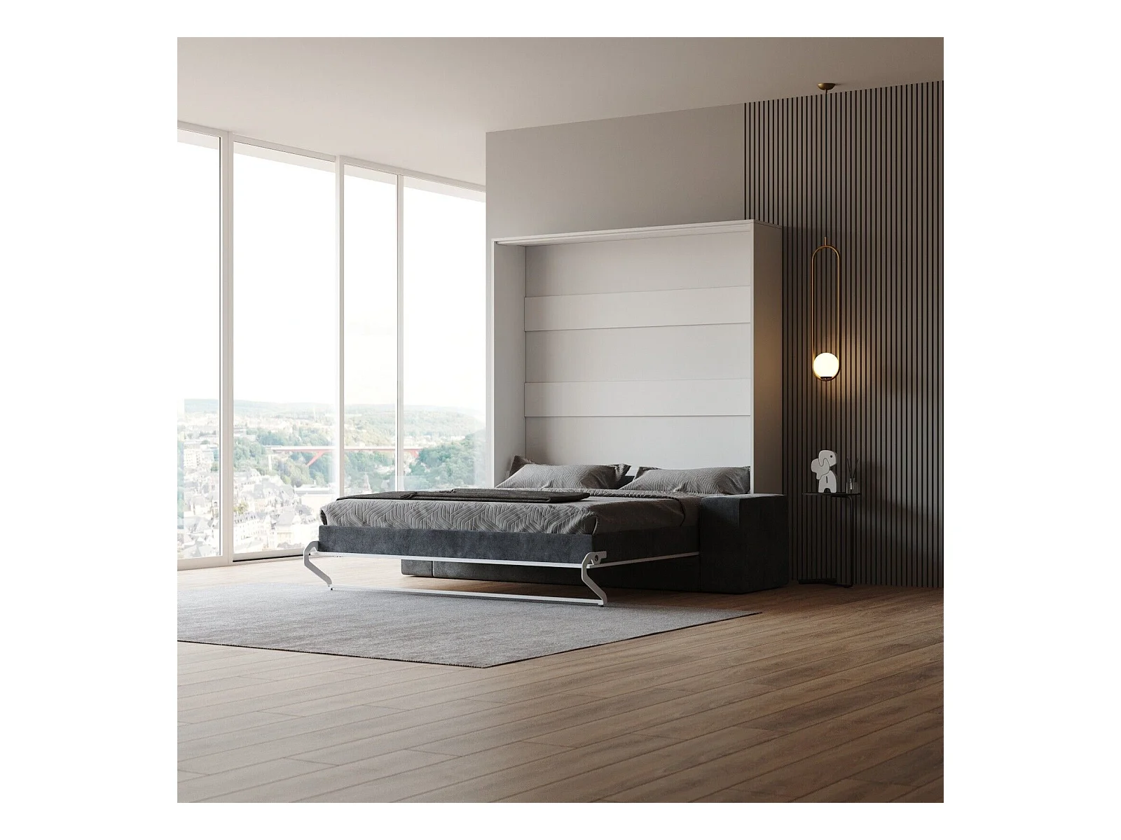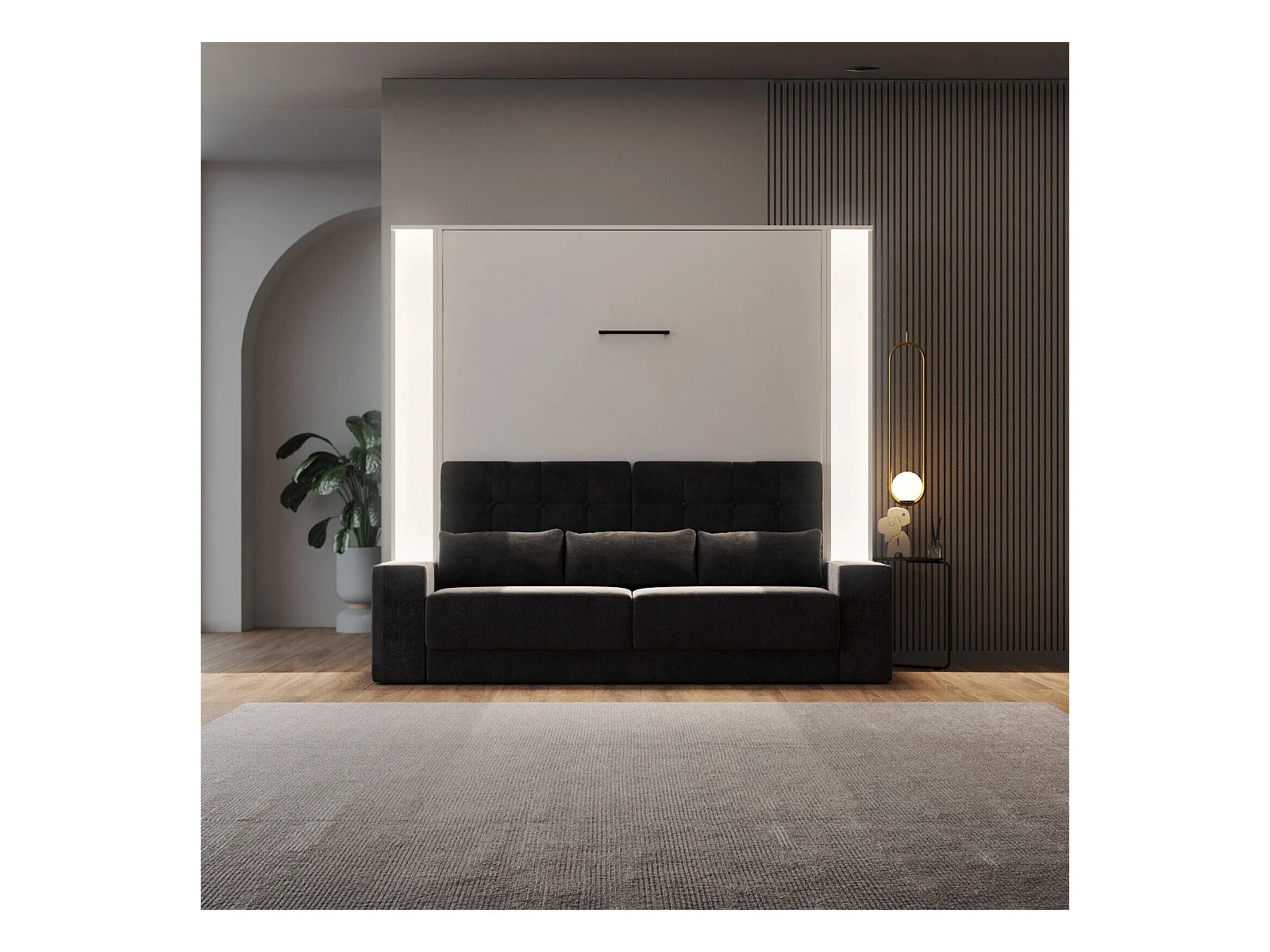 Lit escamotable ensemble 2 placards étagère et canapé 160x200cm Lit Mural Blanc inc.LED