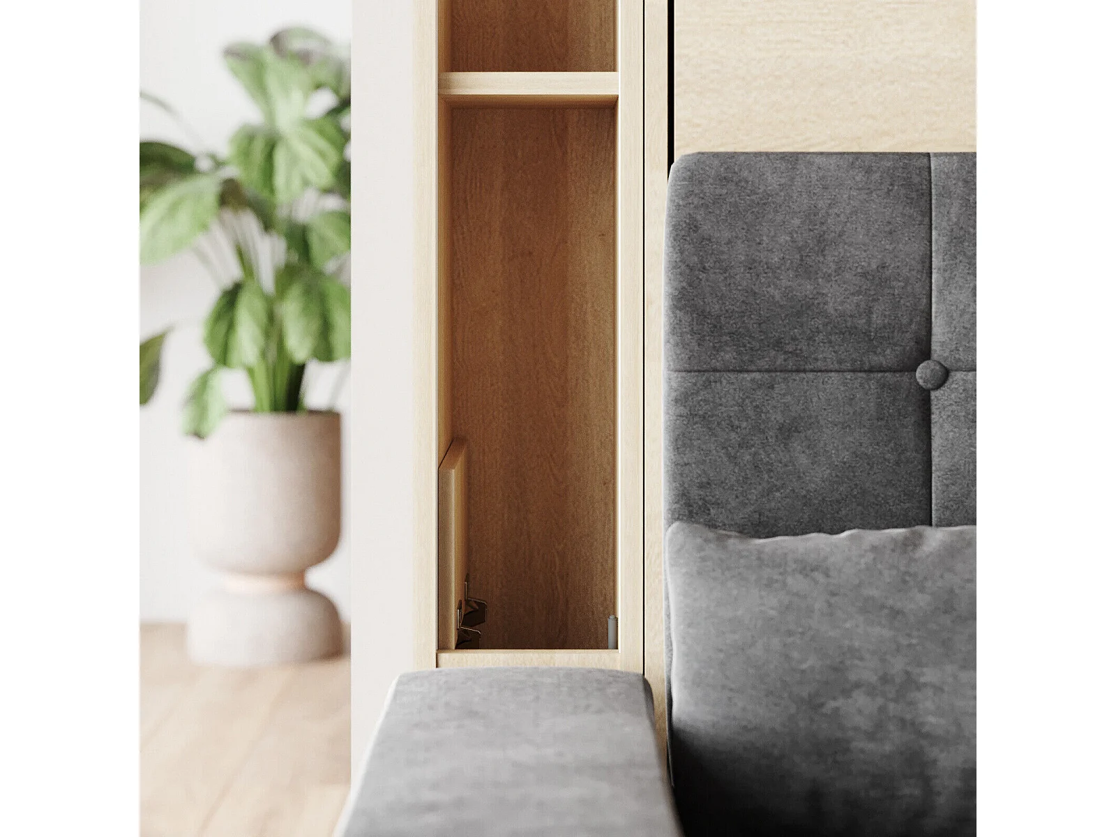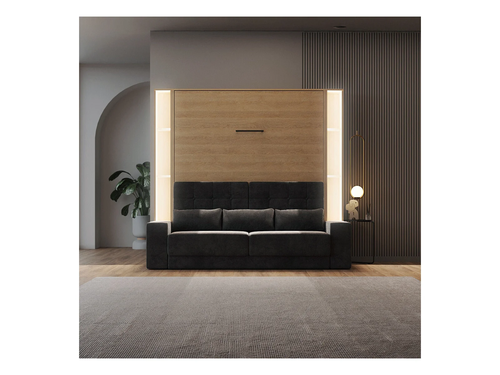 Lit escamotable ensemble 2 placards étagère et canapé 160x200cm Lit Mural Chêne kaiser inc.LED