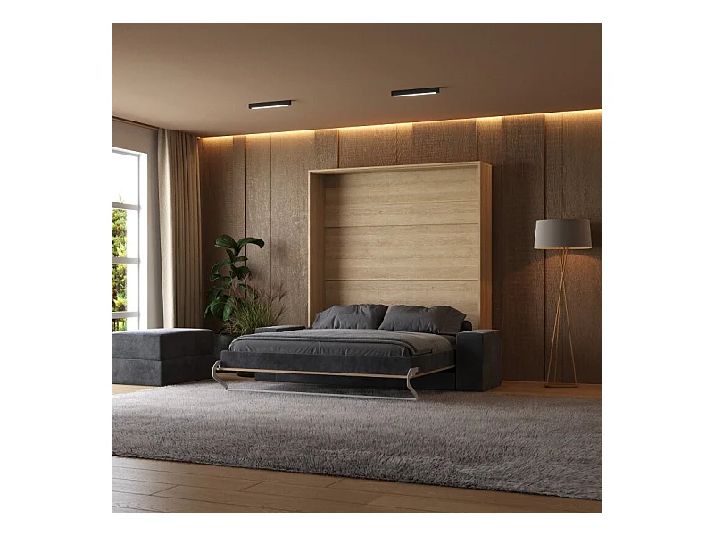 Lit escamotable ensemble 2 placards étagère et canapé 180x200cm Lit Mural Chêne kaiser inc.LED