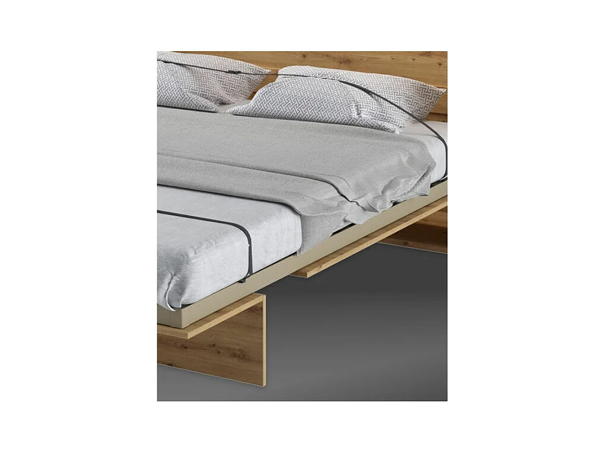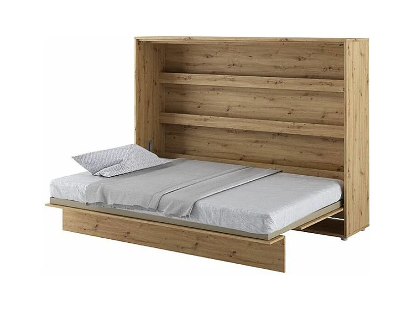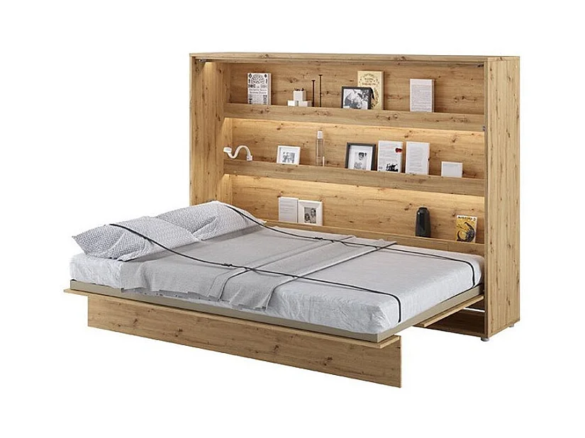 Lit escamotable horizontal avec étagères chêne artisan Noby 140x200-Avec matelas-Avec Led et 2 veilleuses
