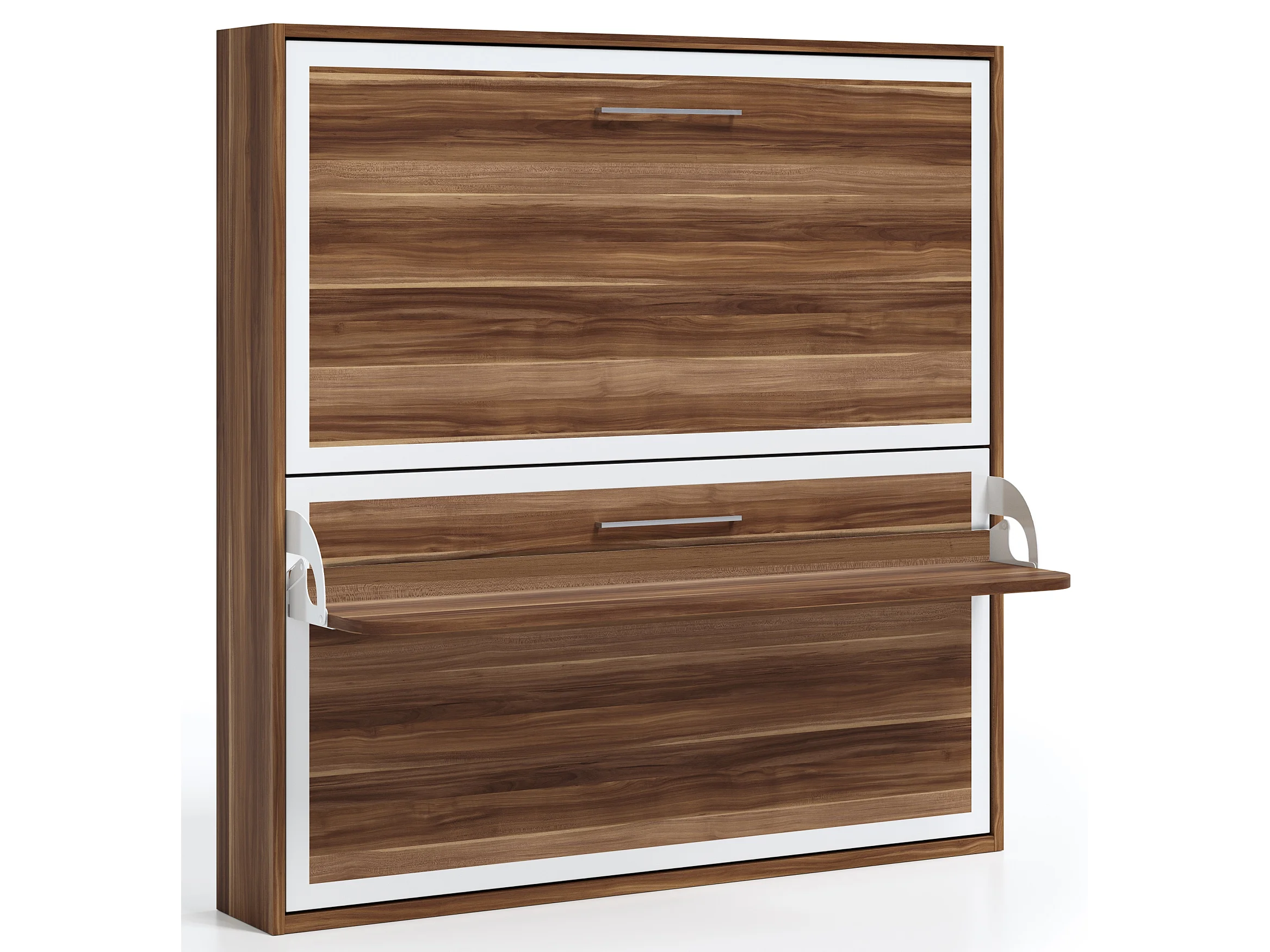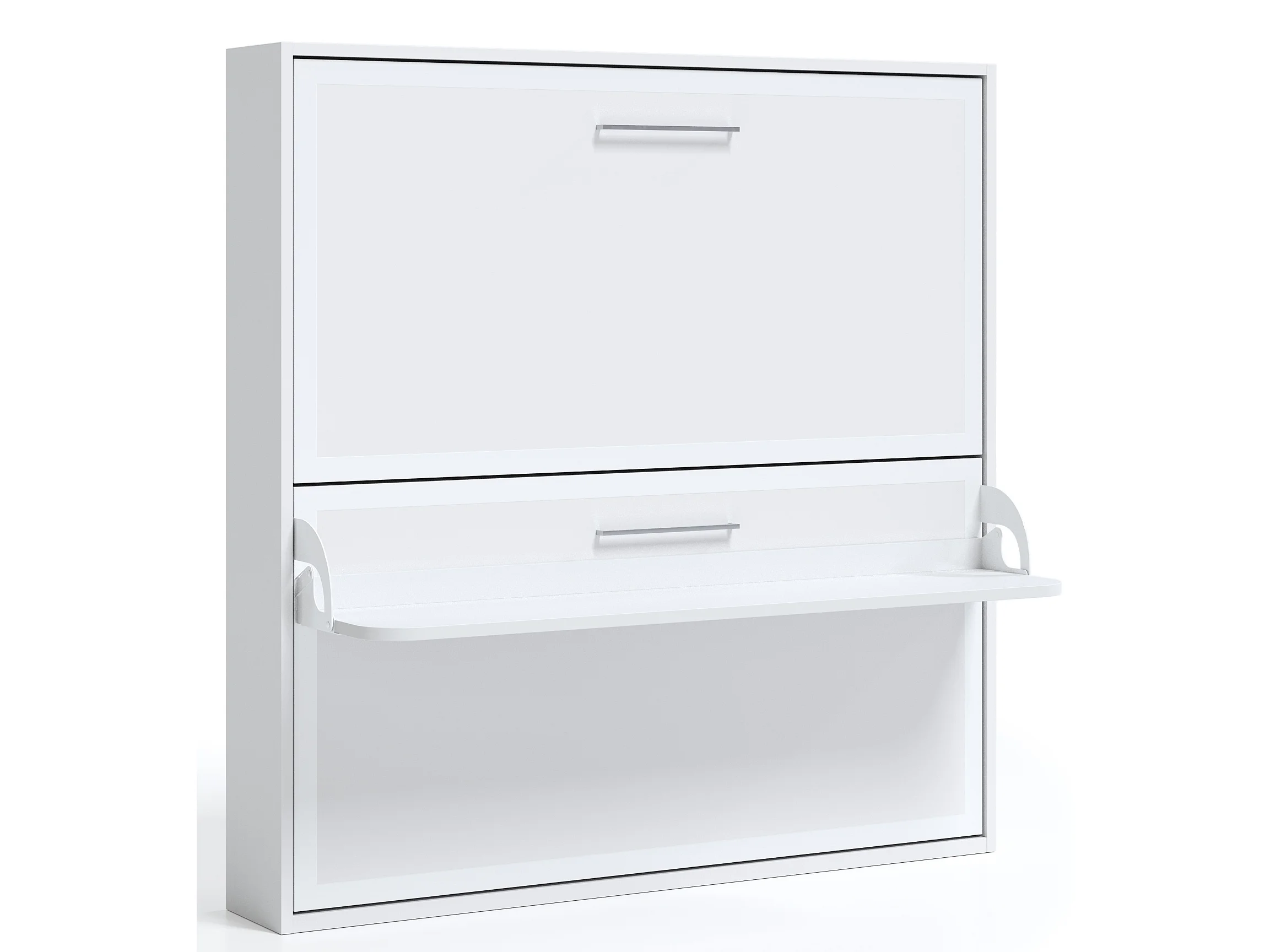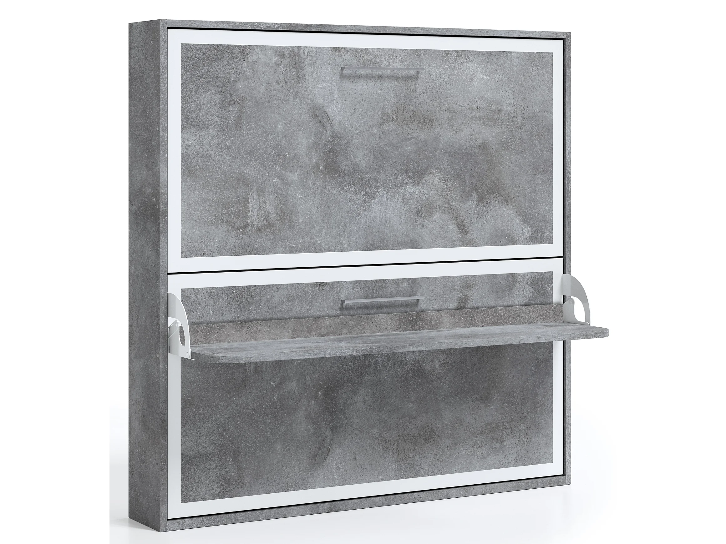 Lit escamotable horizontal superposé 90x180 STUDIO-Encadrement Blanc-Façade Ciment