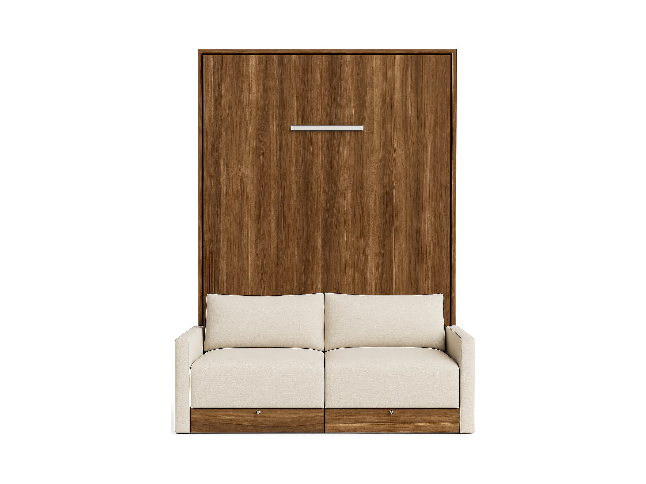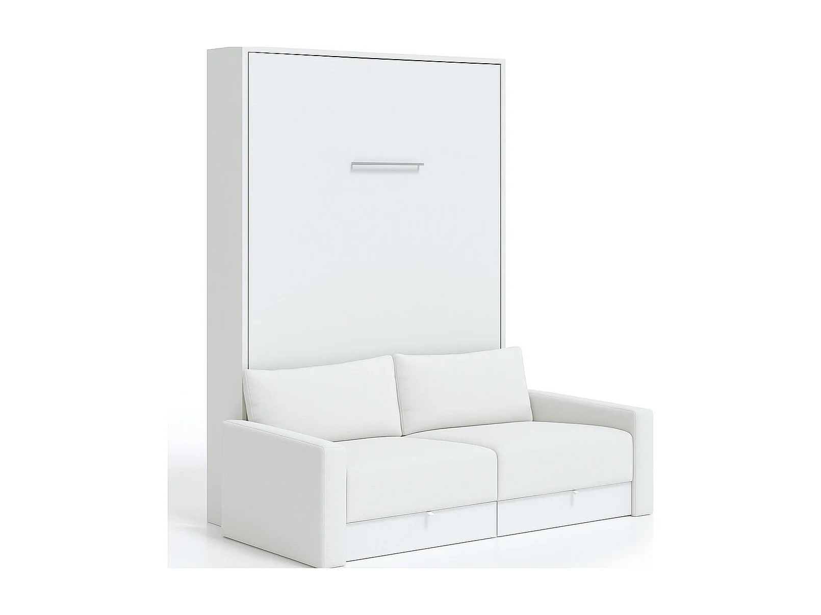 Lit escamotable vertical à tiroirs et canapé tissu VALENCIA-90x190-Canapé Blanc-Structure Blanche