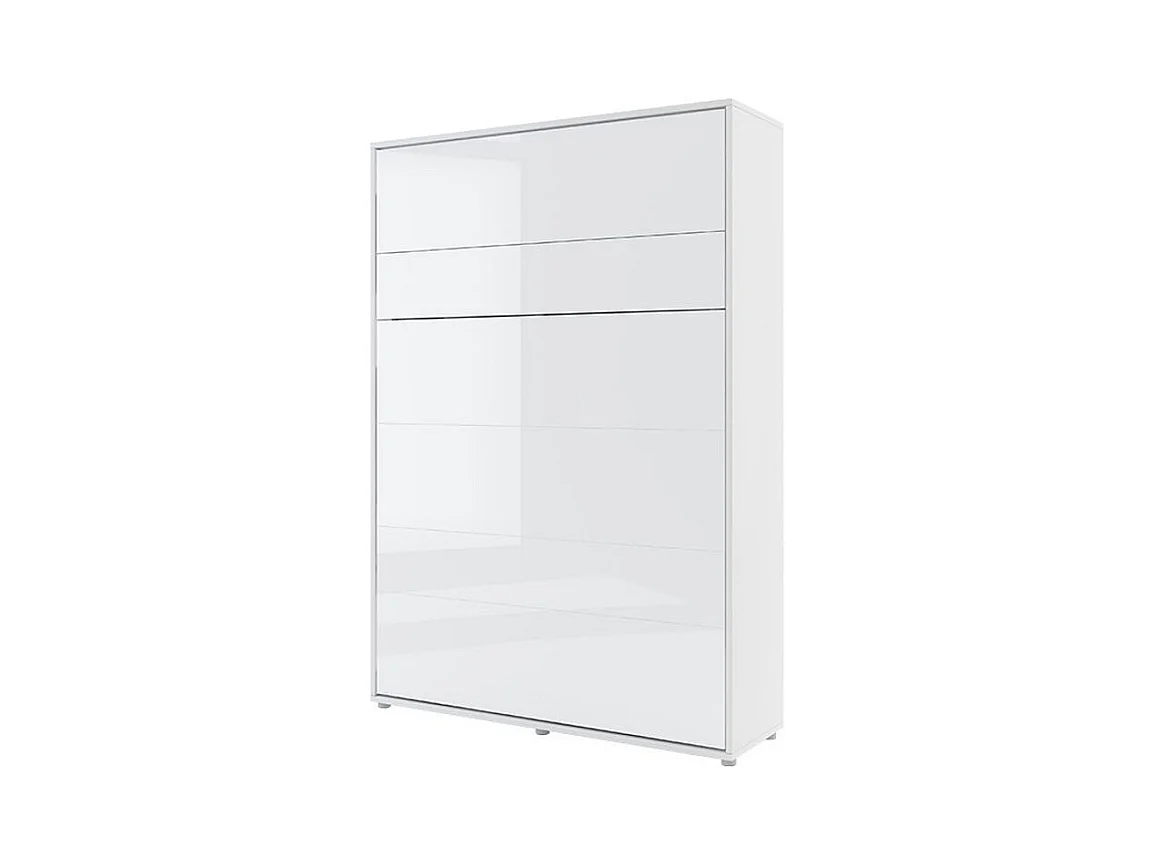 Lit escamotable vertical avec étagères blanc brillant Noby 140x200-Avec matelas-Avec Led et 2 veilleuses