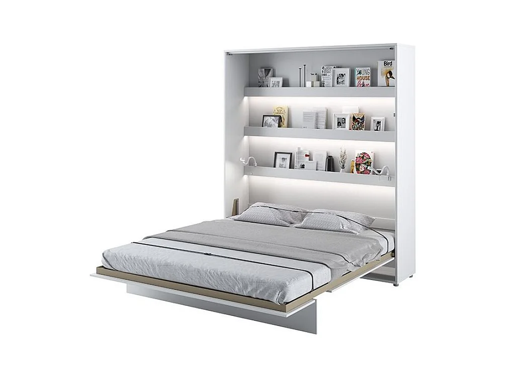 Lit escamotable vertical avec étagères blanc brillant Noby 180x200-Avec matelas