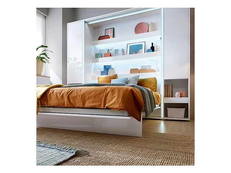 Lit escamotable vertical avec étagères blanc brillant Noby 180x200-Avec matelas