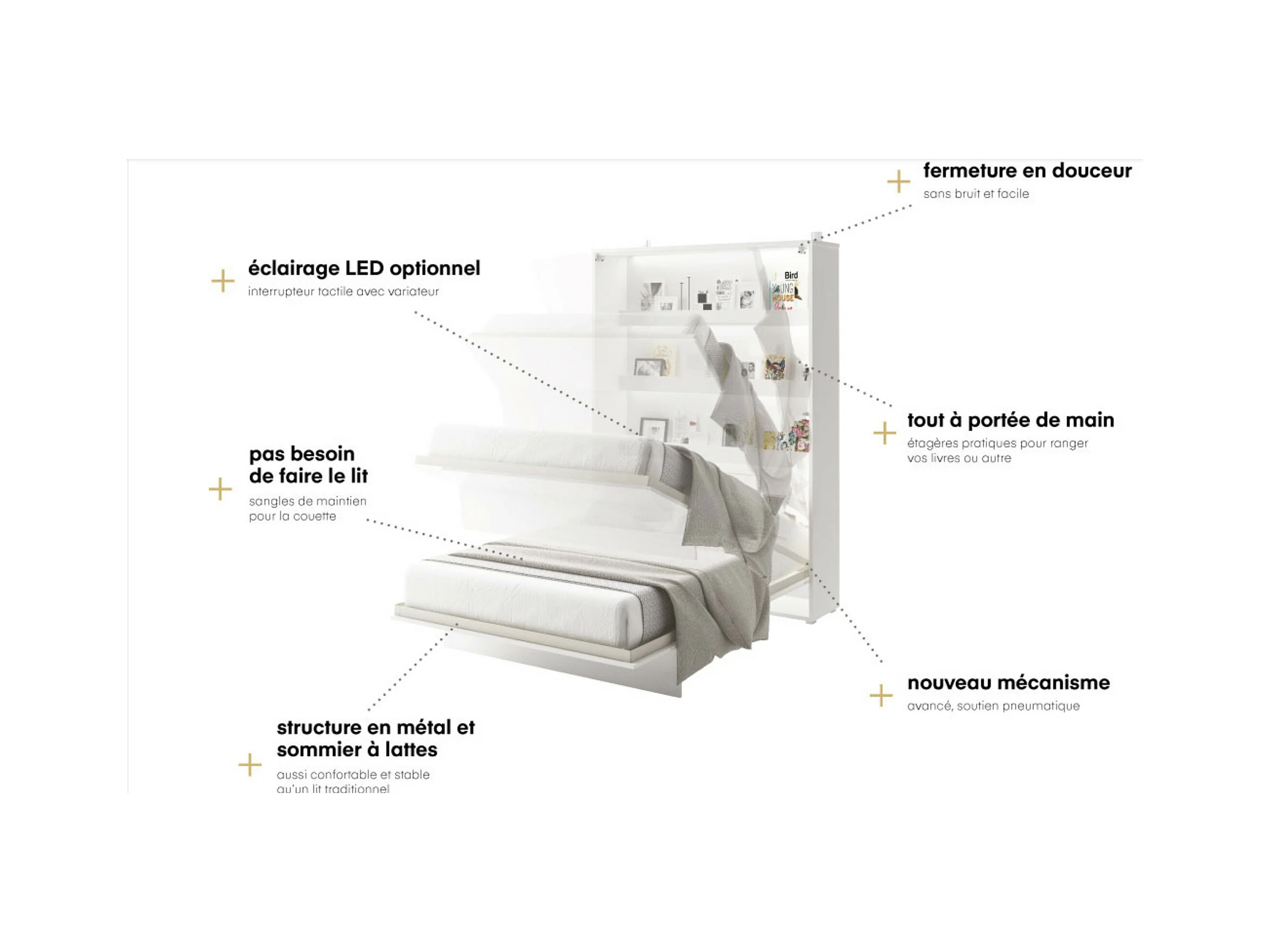 Lit escamotable vertical avec étagères chêne artisan Noby 140x200-Avec Led et 2 veilleuses