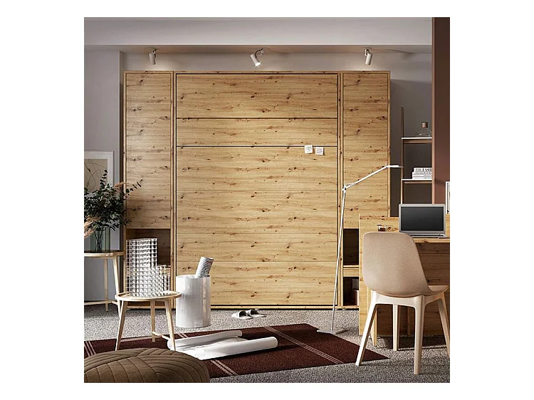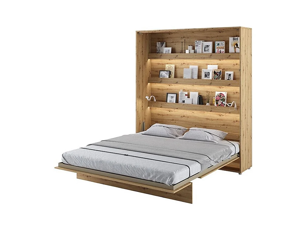 Lit escamotable vertical avec étagères chêne artisan Noby 180x200-Avec matelas
