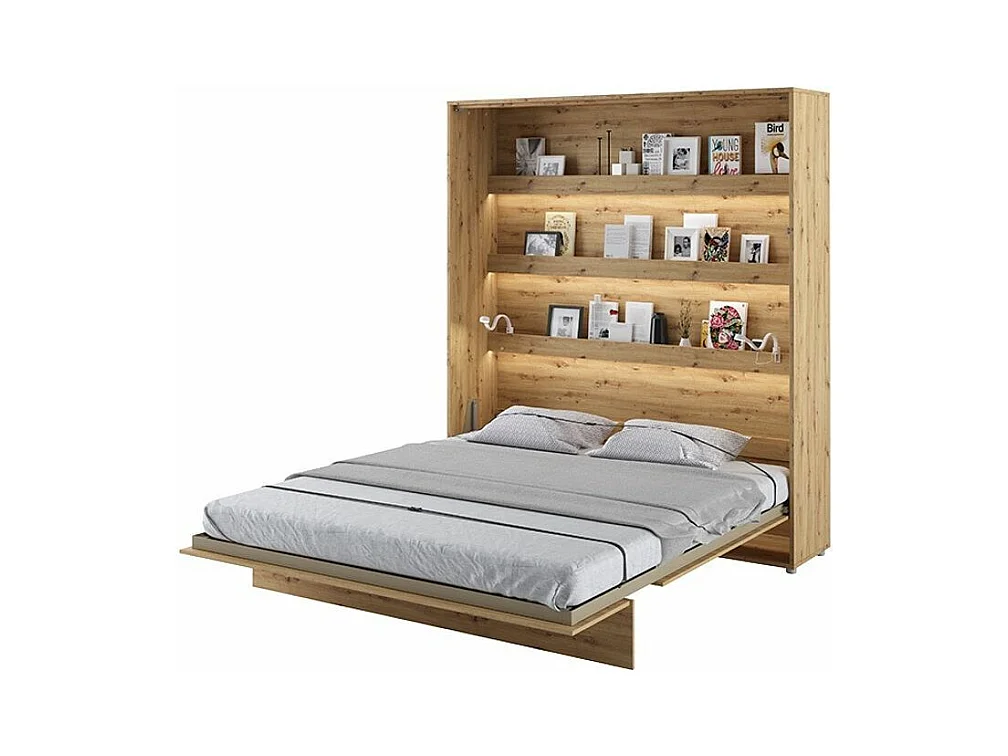 Lit escamotable vertical avec étagères chêne artisan Noby 180x200-Avec matelas-Avec Led sans veilleuses