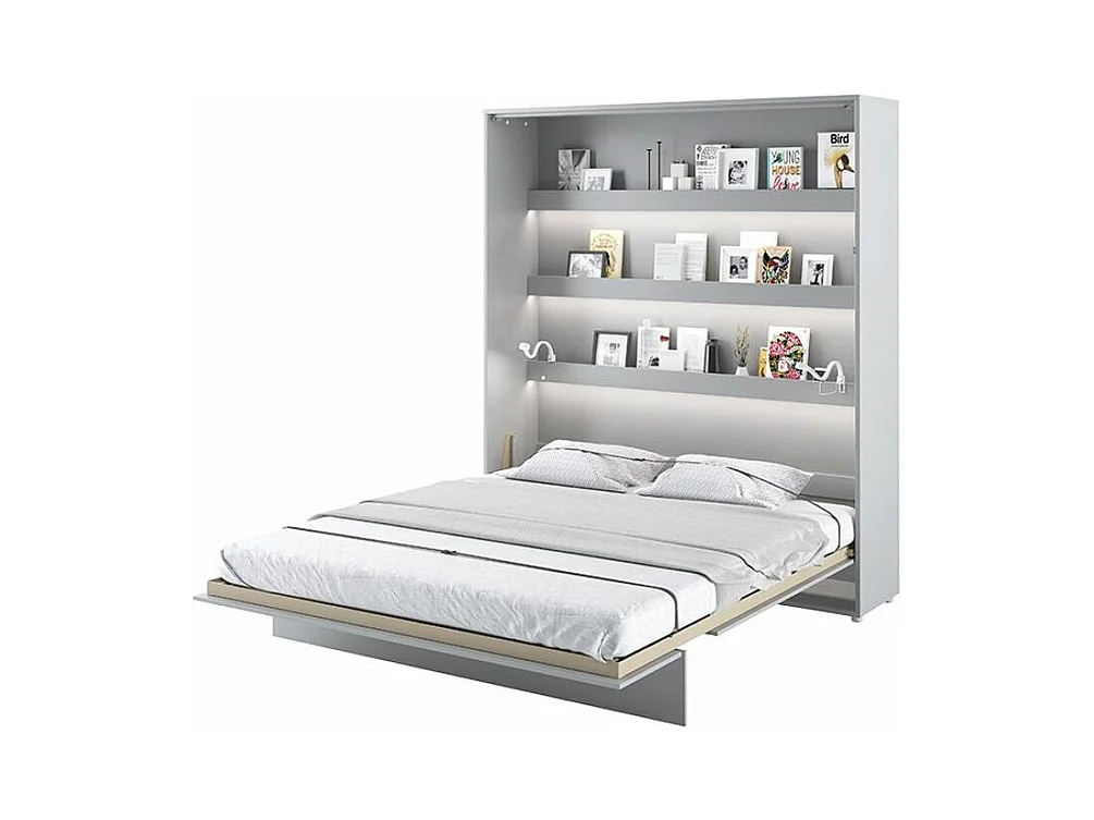Lit escamotable vertical avec étagères gris mat Noby 180x200-Avec Led sans veilleuses