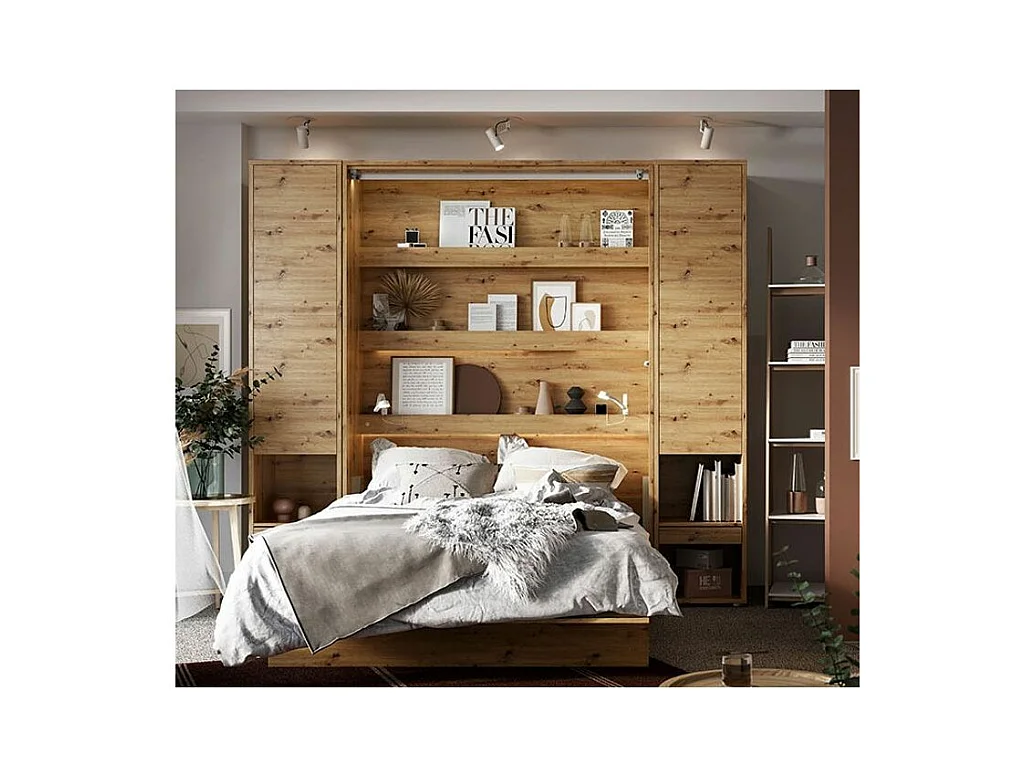 Lit escamotable vertical chêne artisan avec 2 armoires de rangement Noby-90x200