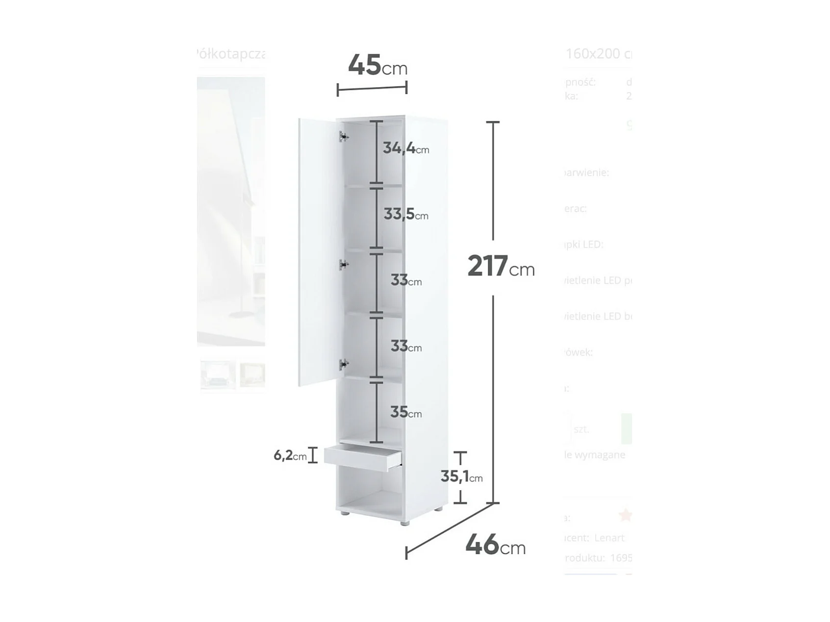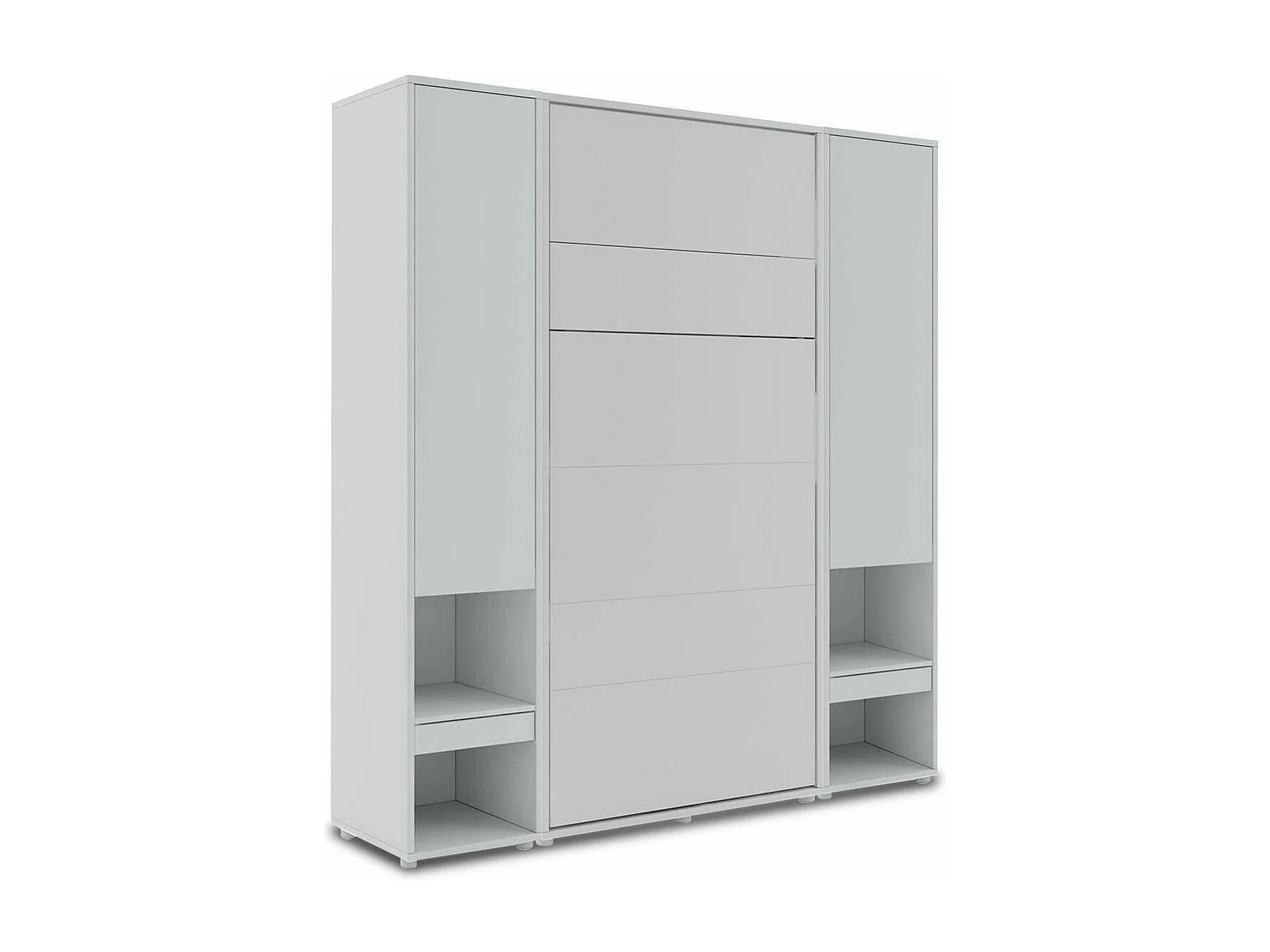 Lit escamotable vertical gris mat avec 2 armoires de rangement Noby-140x200