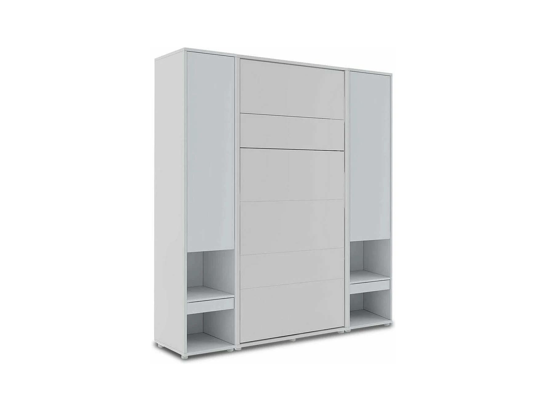 Lit escamotable vertical gris mat avec 2 armoires de rangement Noby-180x200