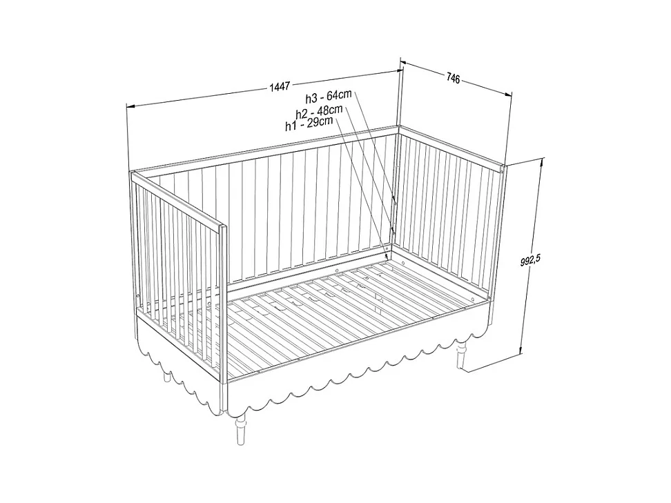 Lit évolutif 70x140 et commode 3 tiroirs Babushka Rose